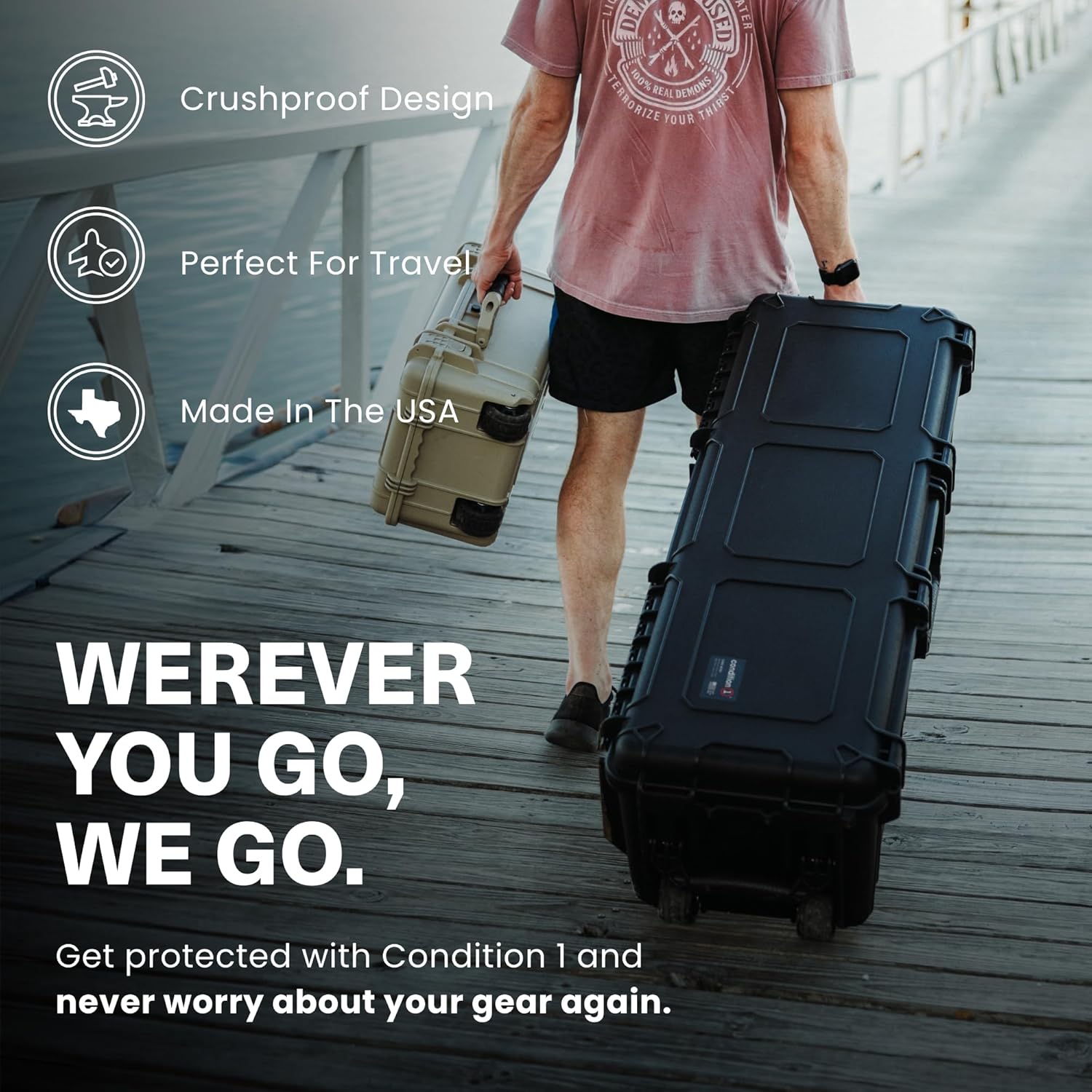 Condition 1 45" Long Hard Shell Carrying Case Model 2191 with Wheels, Waterproof, Protective, Storage for Music Equipment, Camera, Travel Case, Made in USA, 44.52"x16.30"x12.90" Black