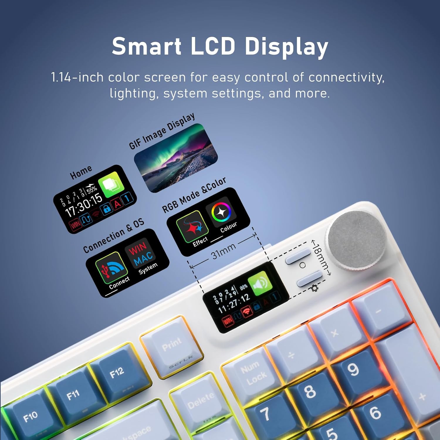 iRocks K85R Wireless RGB Backlit Mechanical Gaming Keyboard with LCD Display, Hot-Swappable Pre-lubed Brown Switches, 98 PBT Keys, USB-C Detachable Cable (Aurora Blue, Bubble Switch)