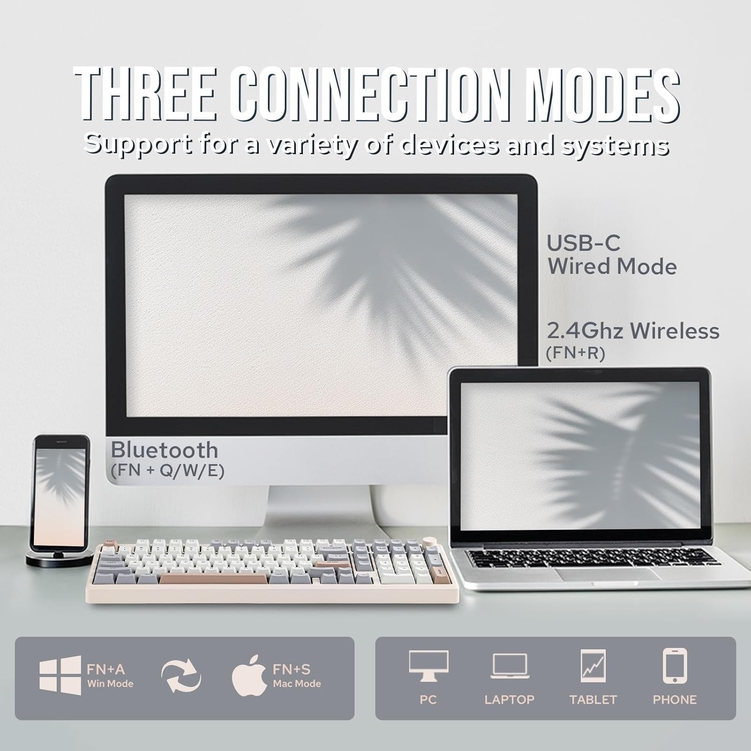- Long-Lasting Wireless Performance: Powered by the outstanding 8000mah battery, the Galaxy100 keyboard gives you convenience and productivity. Packed with three modes of connection, the Galaxy100 keyboard offers reliable 2.4Ghz wireless, low-latency cable mode, and versatile Bluetooth connectivity. Indulge yourself in continuous gaming sessions with no hassle of cable nor interruptions from charging, and relish in the enduring and stable performance made possible by Galaxy100 keyboard
