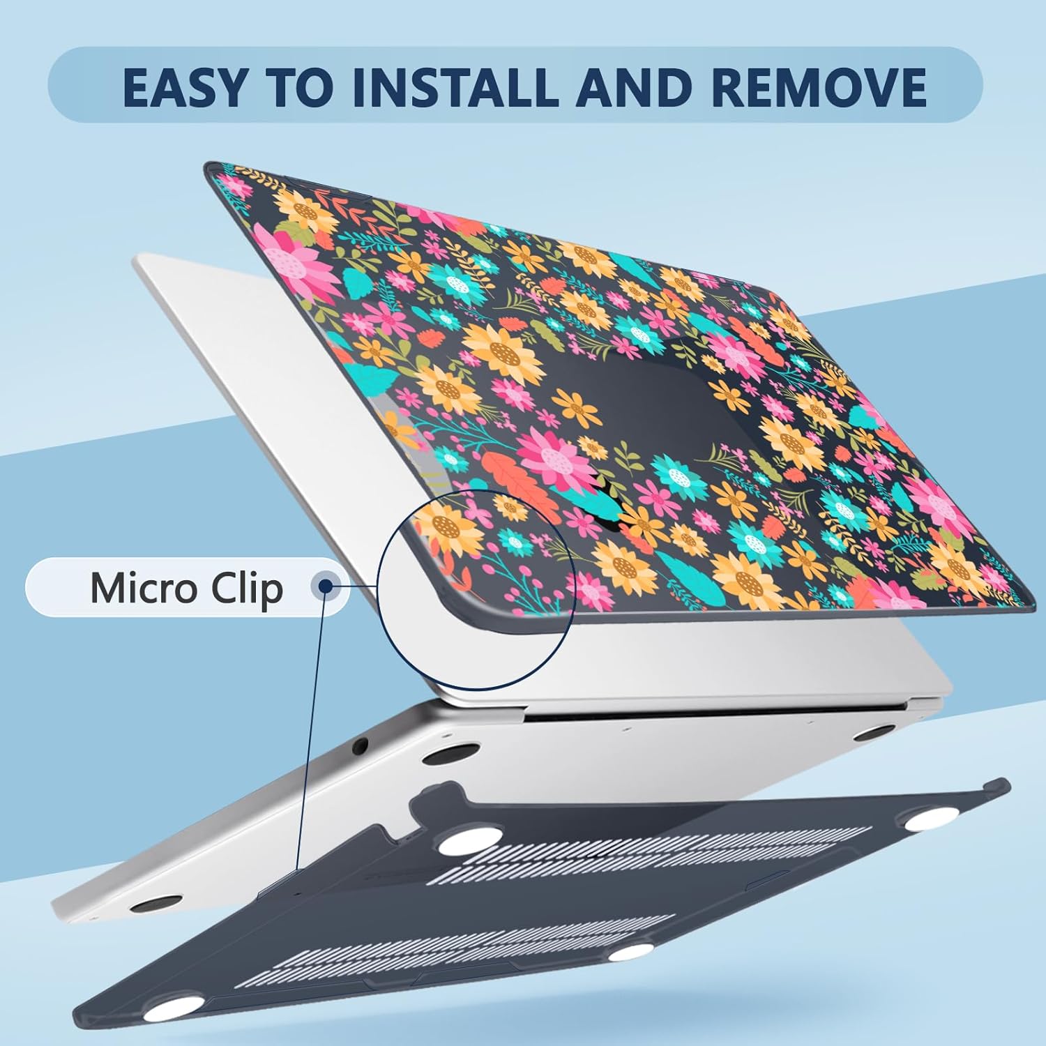 Compatible with MacBook Air 13.6 inch Case, M4 A3240/M3 A3113/M2 A2681 (Released 2025 to 2022), Hard Shell, Keyboard Cover, Screen Protector, Webcam Cover & Type-C Adapter, Colorful Flowers
