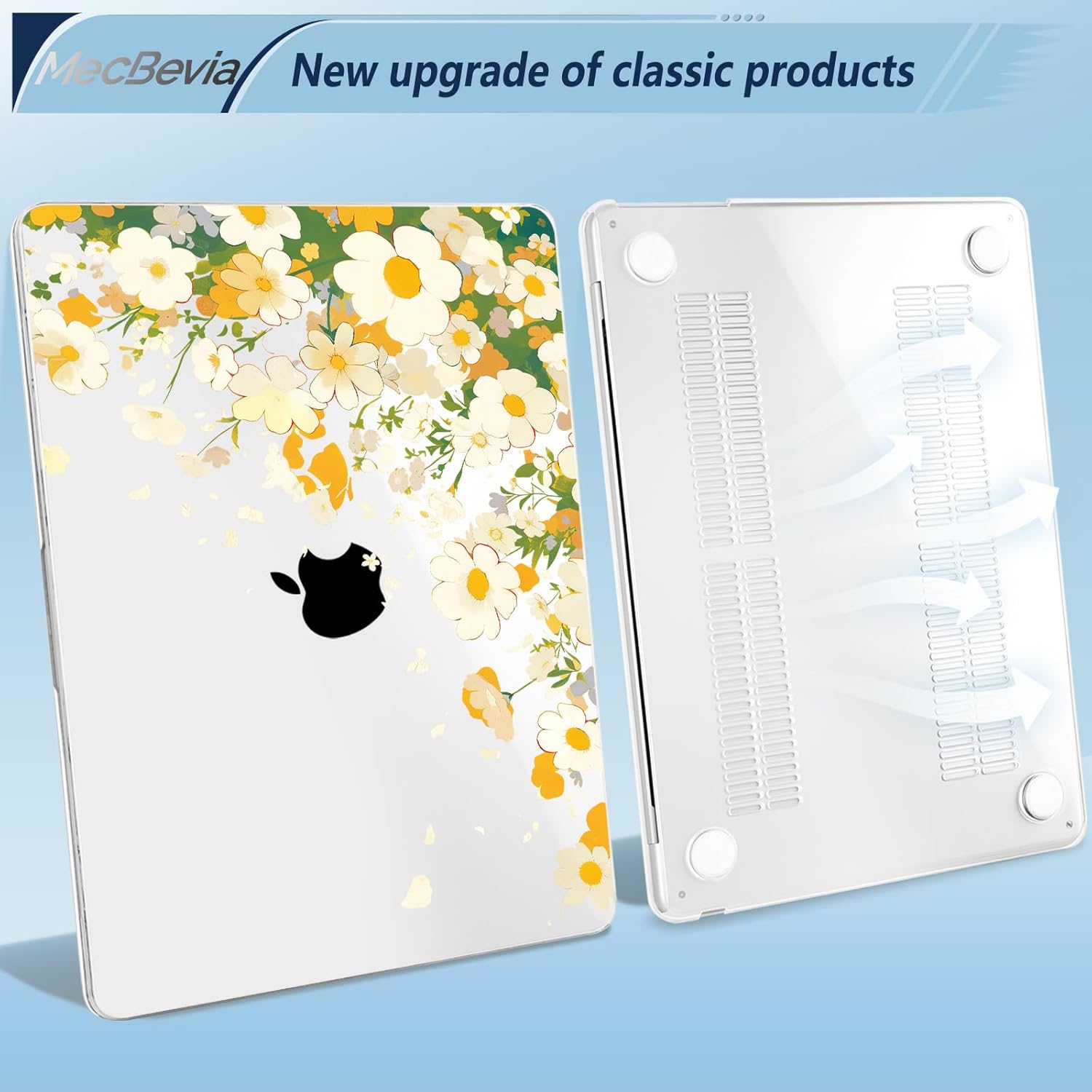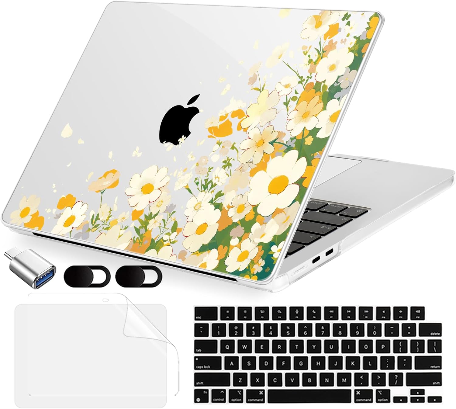 Compatible with MacBook Air 13.6 inch Case, M4 A3240/M3 A3113/M2 A2681 (Released 2025 to 2022), Hard Shell, Keyboard Cover, Screen Protector, Webcam Cover & Type-C Adapter, Scatter Daisies