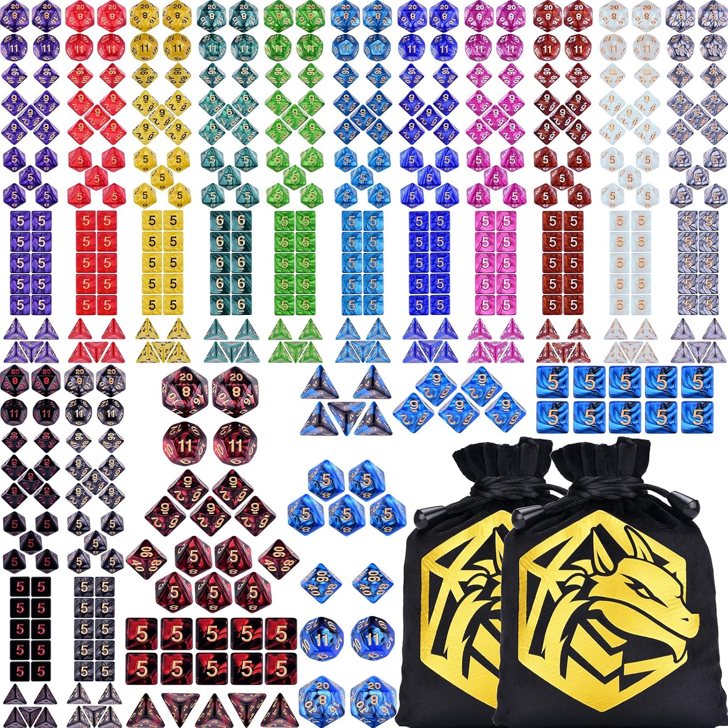 - Comprehensive Collection: Including pearlescent swirl dice sets, solid color dice sets, double color dice sets