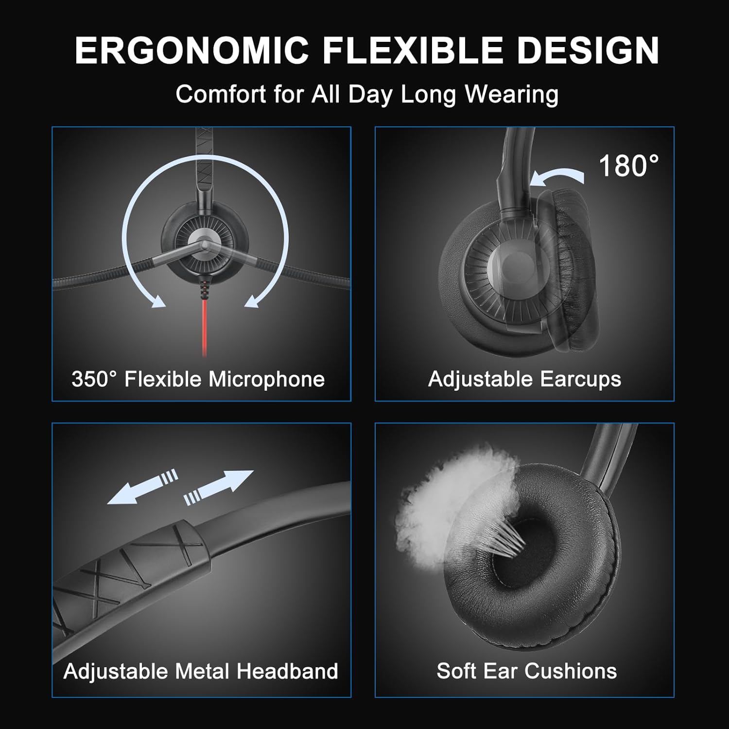 - ENC DUAL MIC NOISE CANCELLING - The USB headset features Dual ENC Microphones noise cancellation technology for a richer and clear communication wherever. Flexible 350-degree Rotational Microphone ensures your voice is always heard clearly with reduced background noise. It is the perfect solution for call center, office, online conference.