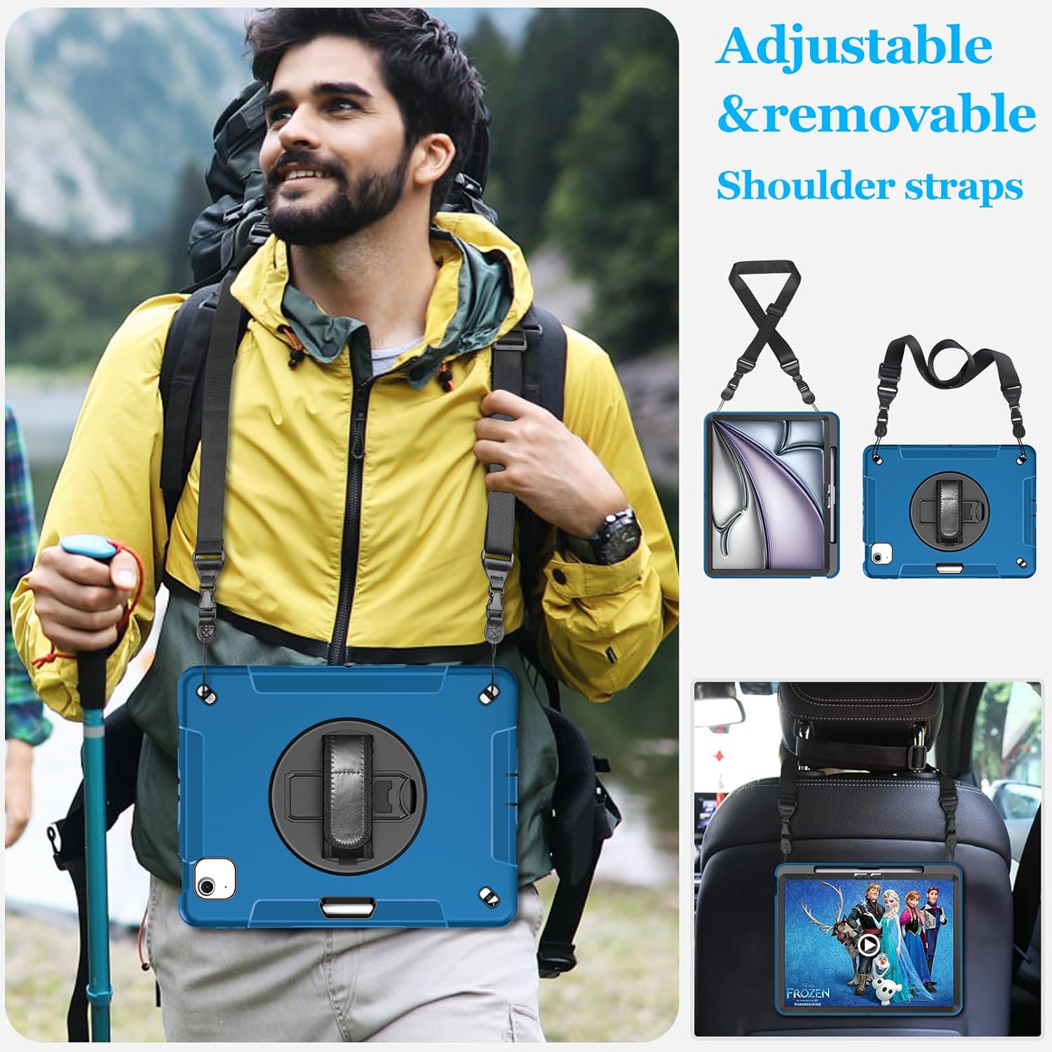 Case for iPad Air 13 Inch M3 2025 & M2 2024: Military Grade Cover for iPad Pro 12.9 6th/5th/4th/3rd Generation W/Screen Protector- Stand- Pencil Holder- Handle- Shoulder Strap- Blue