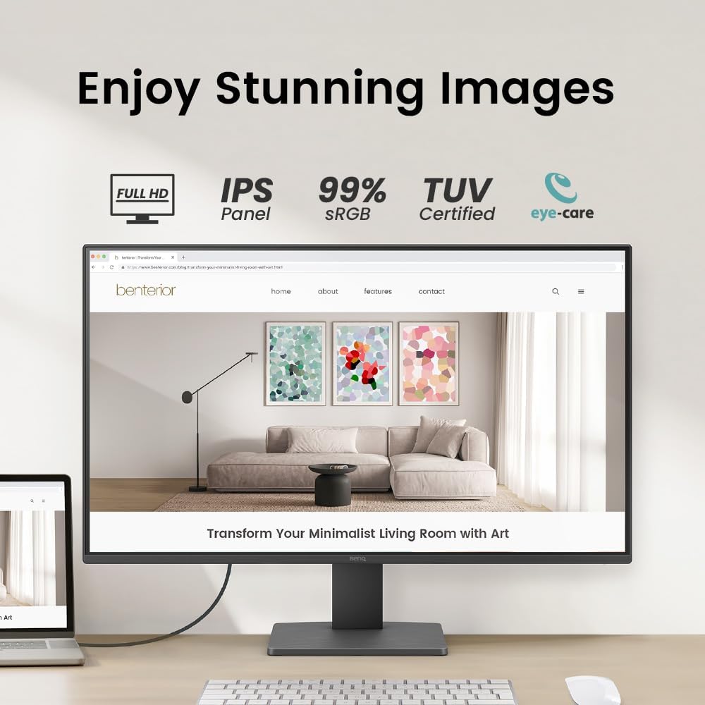 BenQ GW2791 27” 1080p FHD 100Hz IPS Eye-Care Monitor, HDMI, DisplayPort, 1080x1920, Ultra Slim Bezel, TUV-Certified, Flicker-Free, Low Blue Light Plus, Eye-CareU