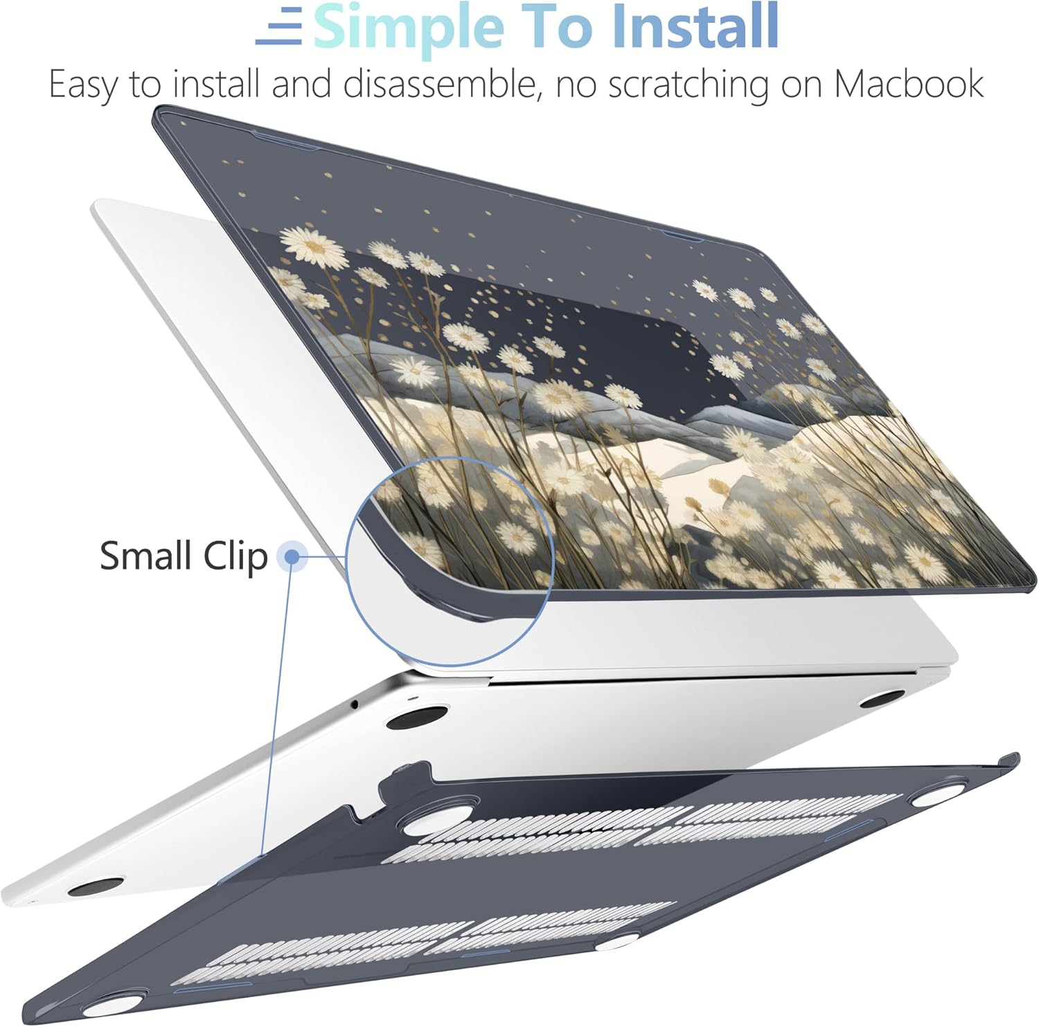 MEEgoodo Case for M4/M3/M2 MacBook Air 13.6 inch Case 2025 2024 2022, Fit Model A3240/A3113/A2681, Laptop Hard Shell with Keyboard Cover Compatible with MacBook Air 13 inch, Starry Wildflowers