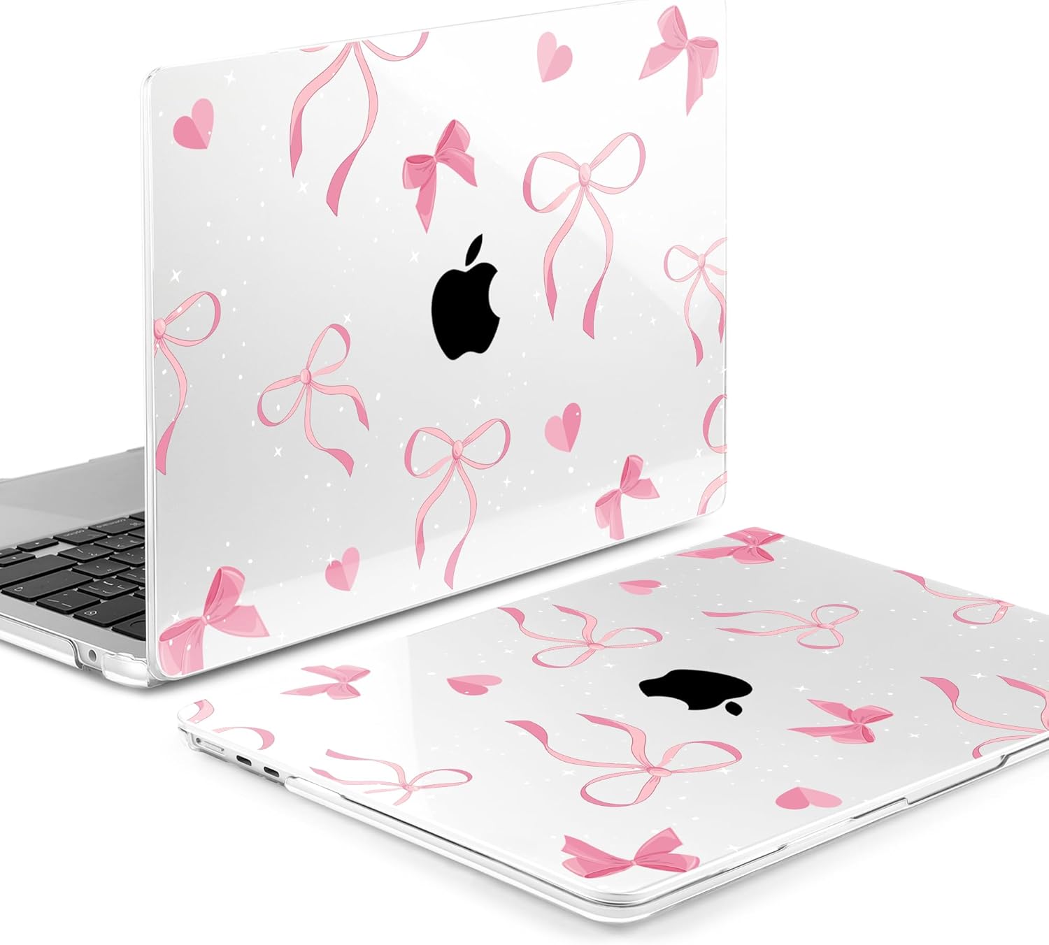 MEEgoodo Case for M4/M3/M2 MacBook Air 13.6 inch Case 2025 2024 2022, Fit Model A3240/A3113/A2681, Laptop Hard Shell with Keyboard Cover Compatible with MacBook Air 13 inch, Pink Ribbons Bows