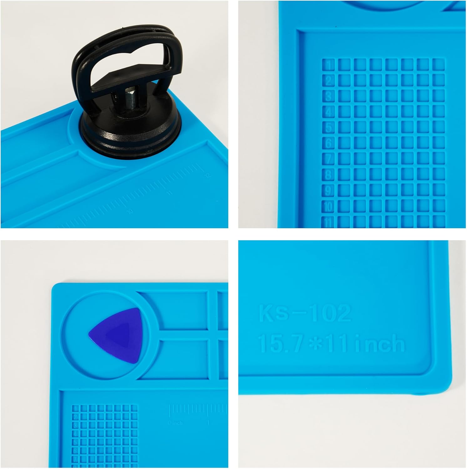 - Widely Usage - The solder mat has 210 mini screw position, 12 Large slots keep your small disassembled components in good classification. You don’t worry the small screws lost in your repairing work. The silicone working mat improve your work efficiency and keep maintenance platform clean and tidy, so the heat-resistant silicone pad be widely used for electronic products repair such as smart phones, laptops, sports watches, cameras, smart toys, watches repair, circuit board repair, soldering