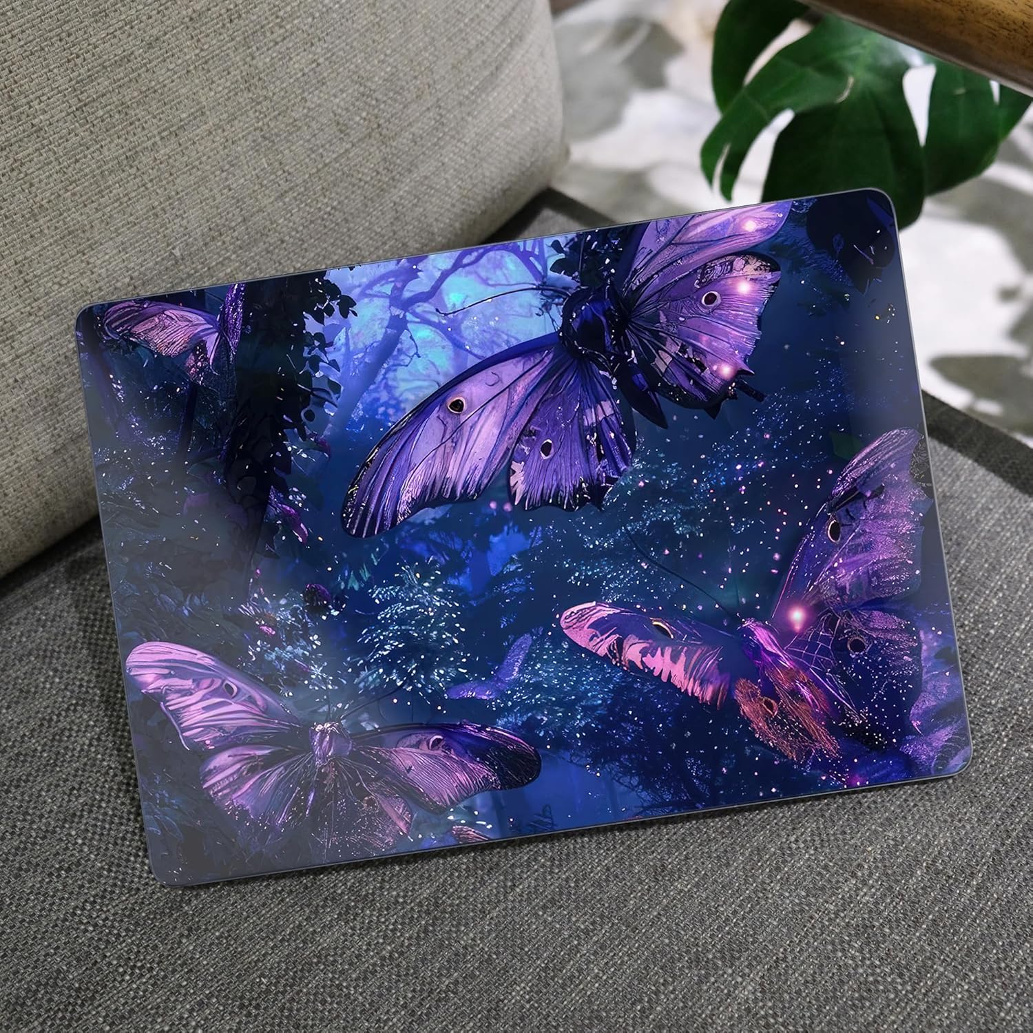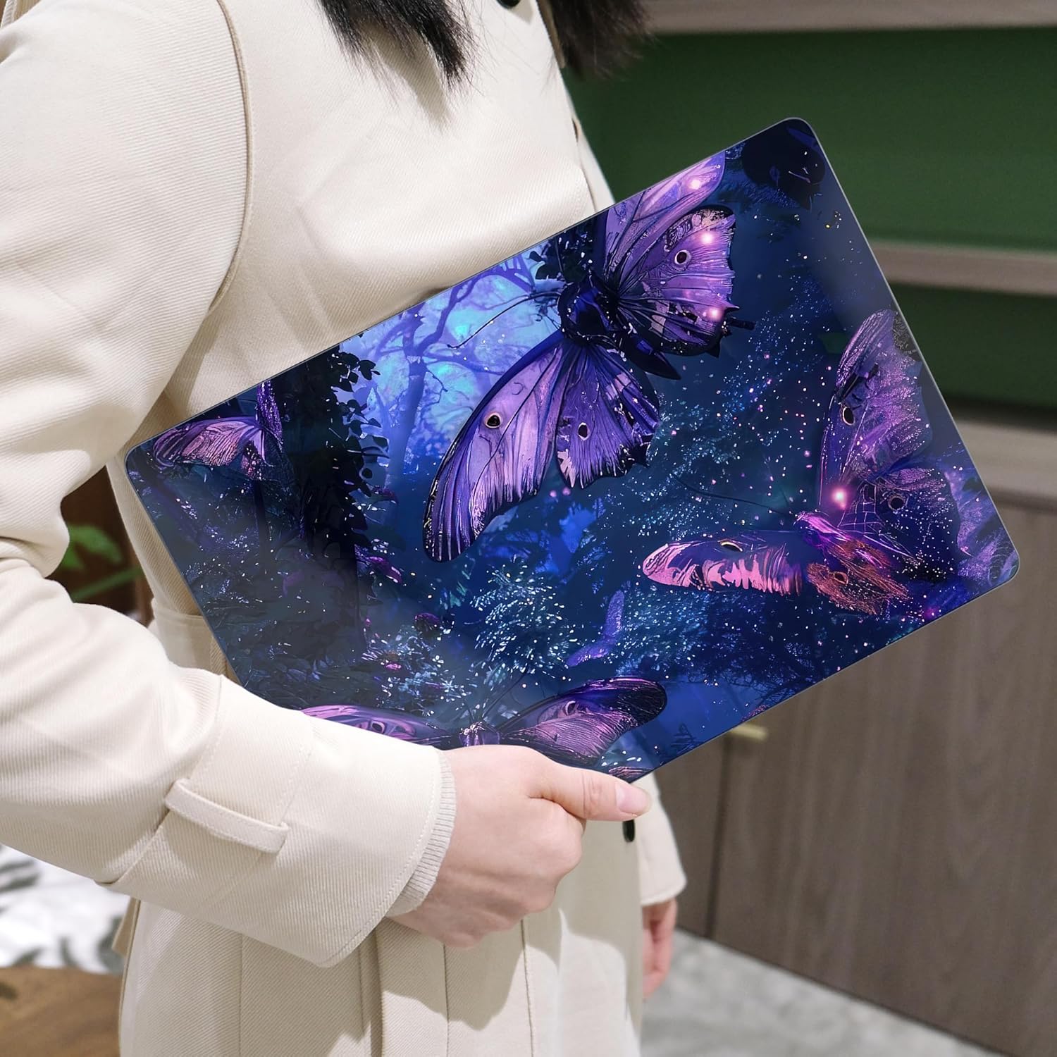 MEEgoodo for MacBook Air 13.3 inch Case 2021 2020 2019 2018 A2337 M1 A2179 A1932, Laptop Shell for MacBook Air M1 with Keyboard Webcam Cover & Trackpad Film & Type C Adapter,Purple & Blue Butterflies
