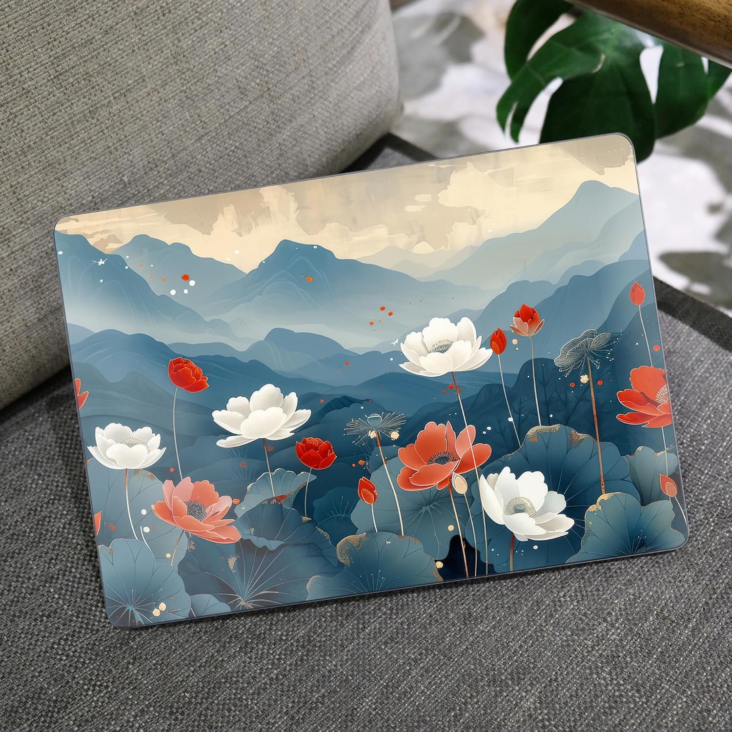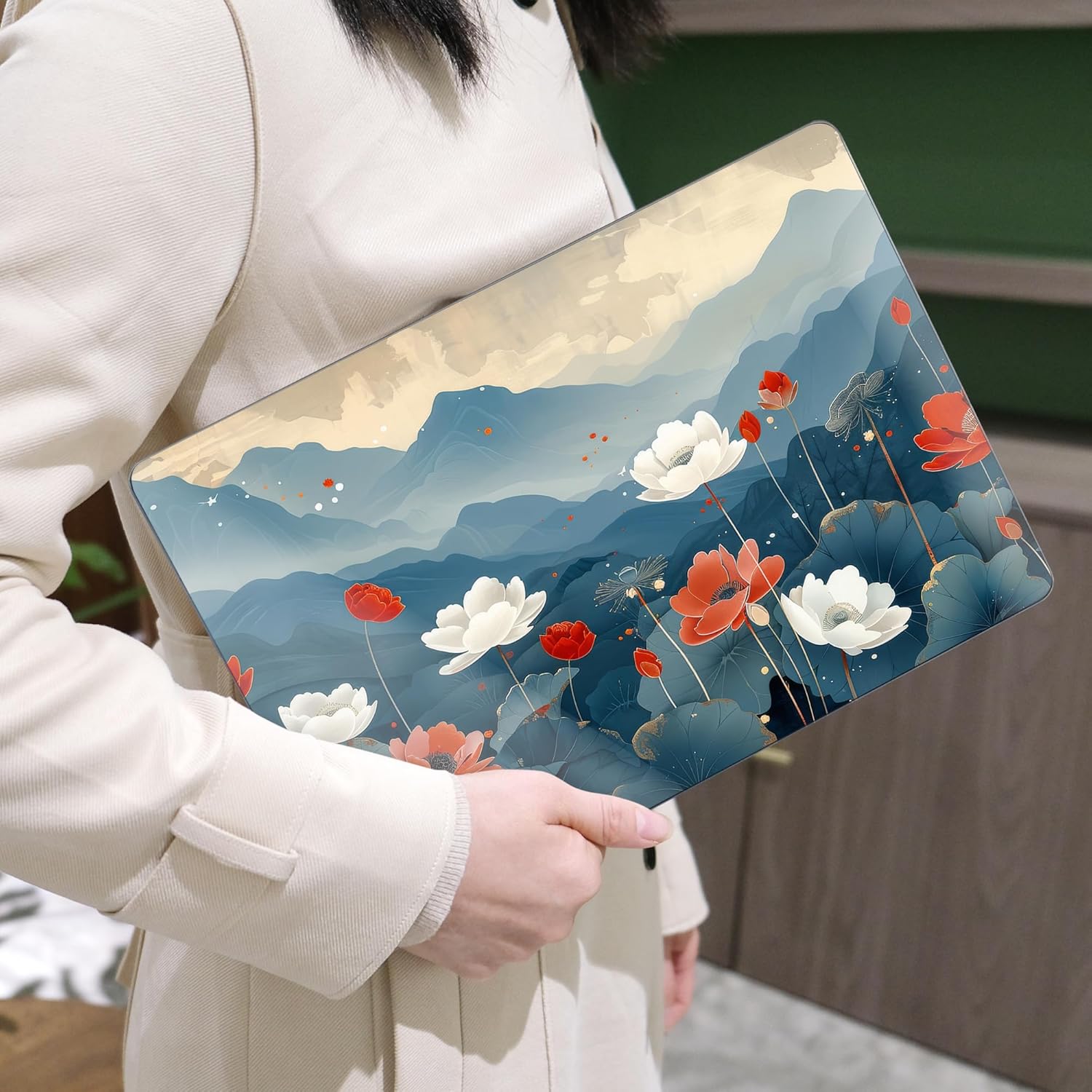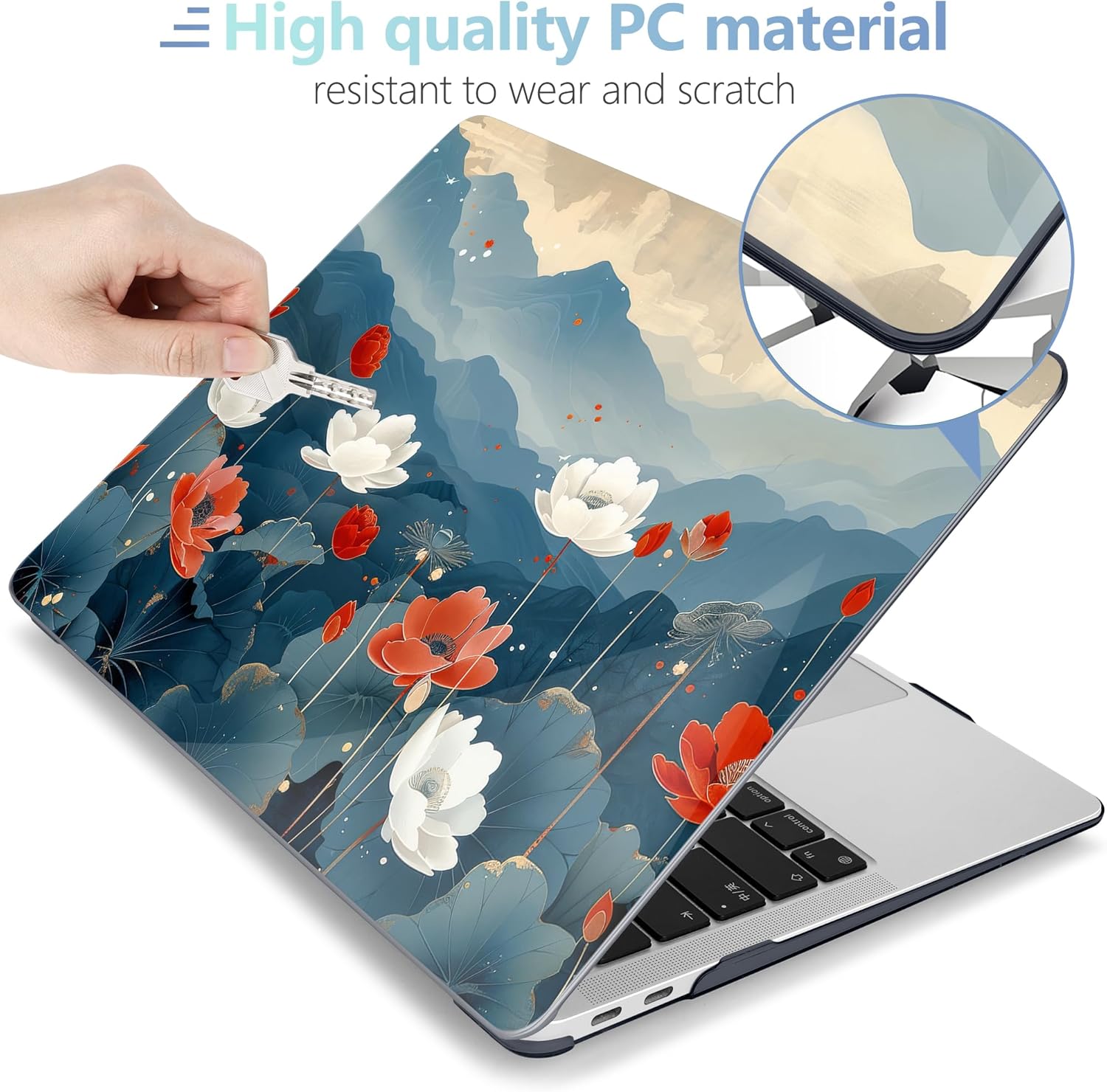 MEEgoodo for MacBook Air 13.3 inch Case 2021 2020 2019 2018 A2337 M1 A2179 A1932, Laptop Shell for MacBook Air M1 with Keyboard Webcam Cover & Trackpad Film & Type C Adapter,Lotus Fields