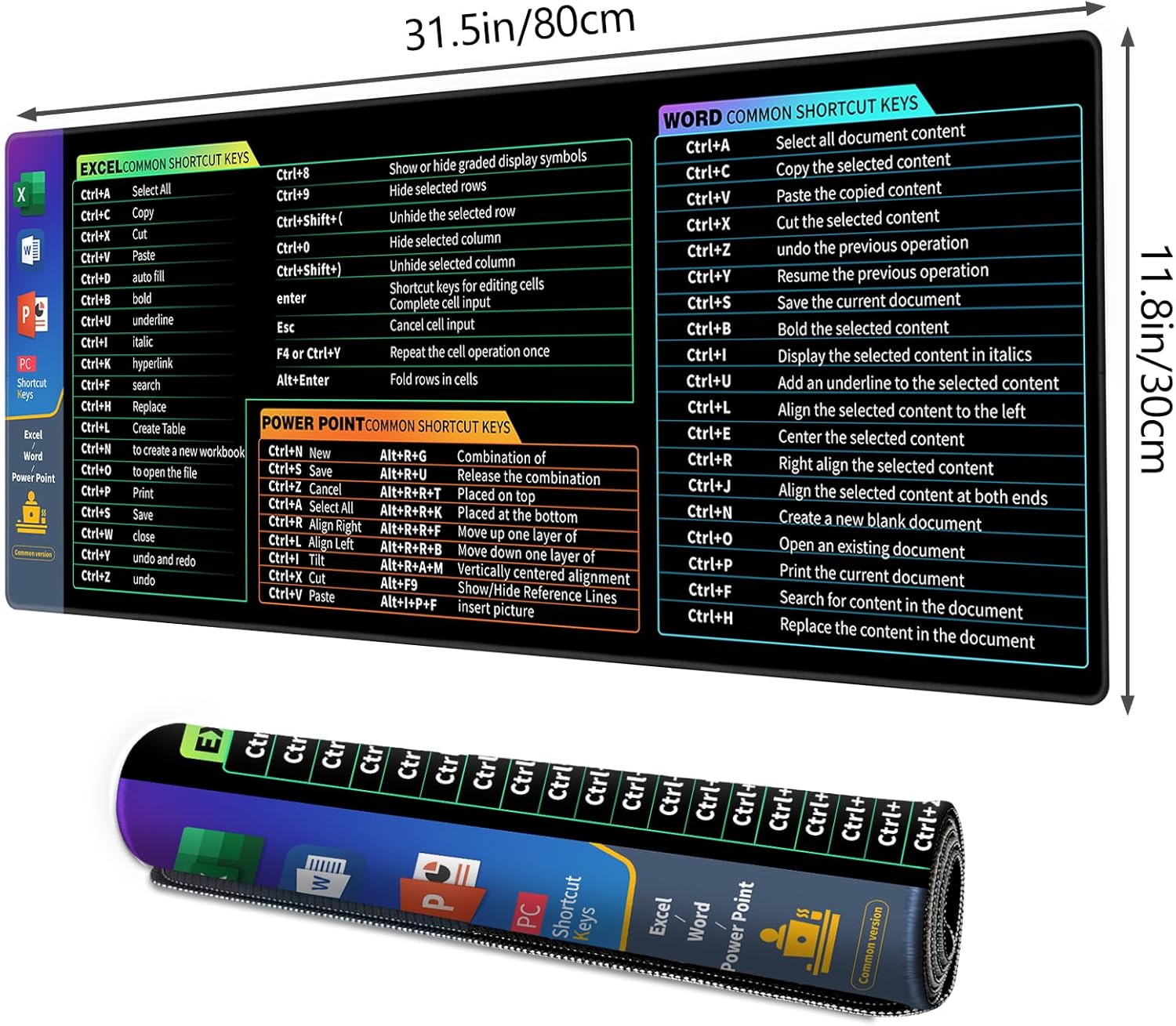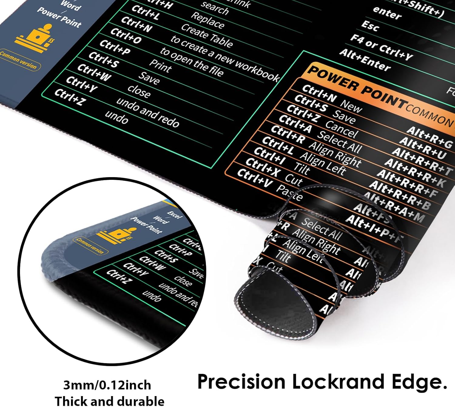 Galdas Gaming Mouse Pad XXL XL Large Long Extended Big Mousepad Non-Slip Rubber Keyboard Desk Pad with Stitched Edges for Laptop Home Office (31.5x11.8x0.08 Inch) … (Shortcut Keys1)