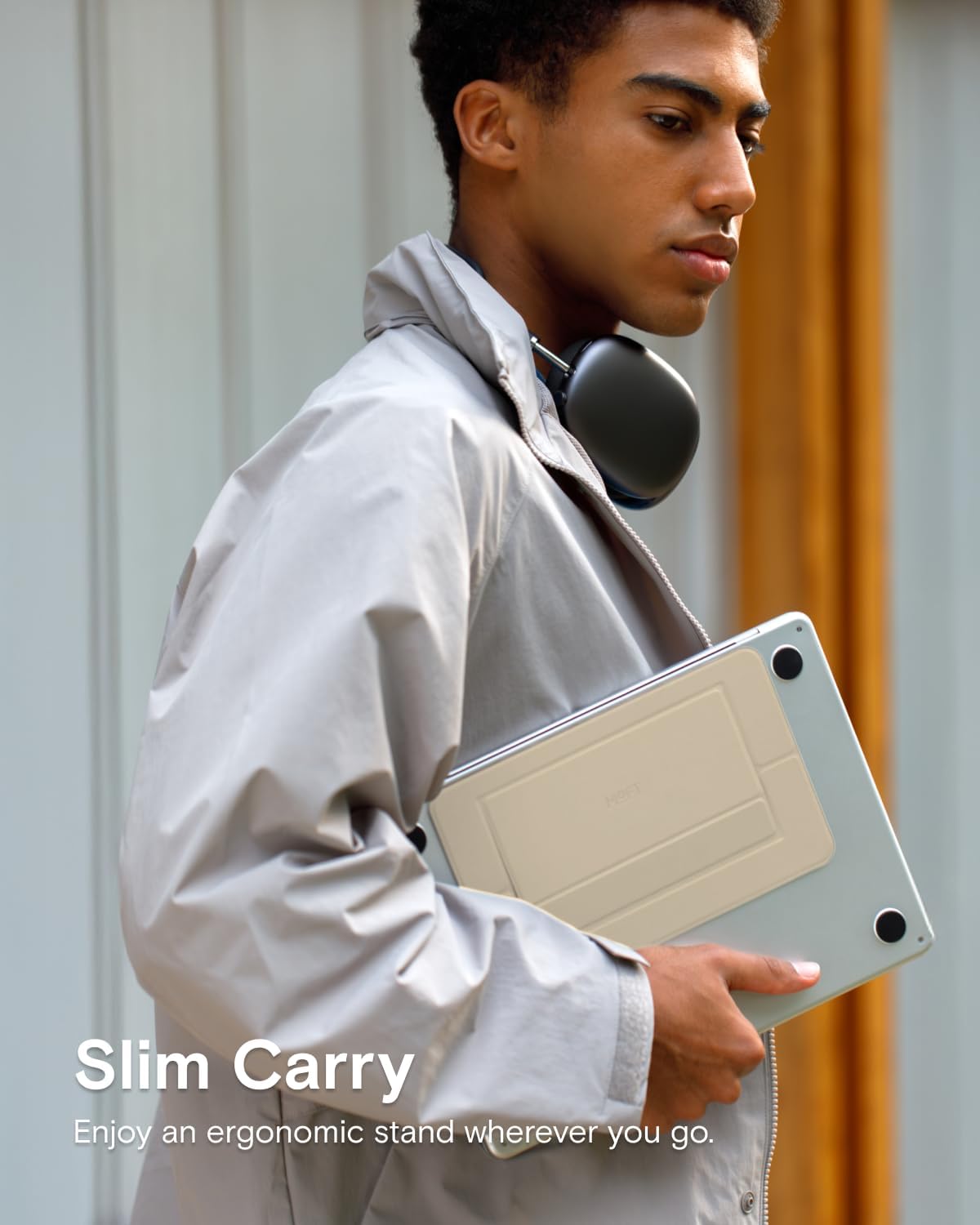MOFT Laptop Stand for Desk, Adhesive Airflow Laptop Cooling Stand for Heat Dissipation with 2 Adjustable Viewing Angles,Foldable&Portable Computer Stand Compatible with Laptops 11"-16",Earthen Beige