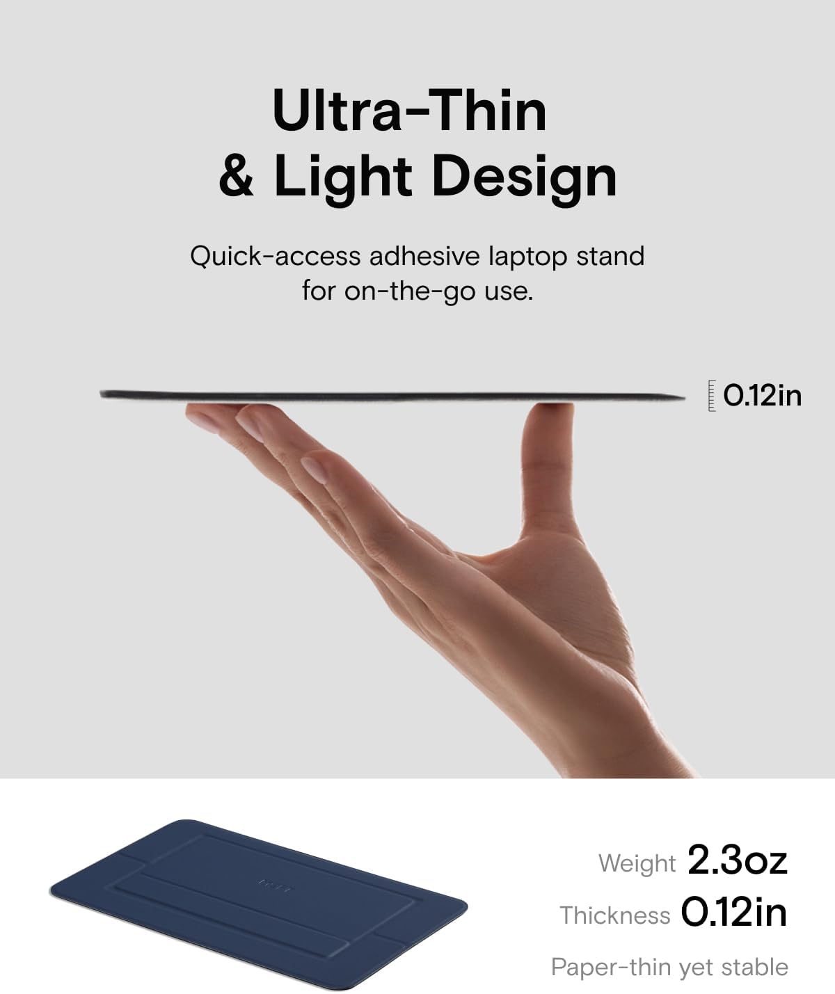 MOFT Laptop Stand for Desk, Adhesive Airflow Laptop Cooling Riser for Heat Dissipation with 2 Adjustable Viewing Angles, Foldable & Portable Computer Stand Compatible with Laptops 11"-16", Navy Blue