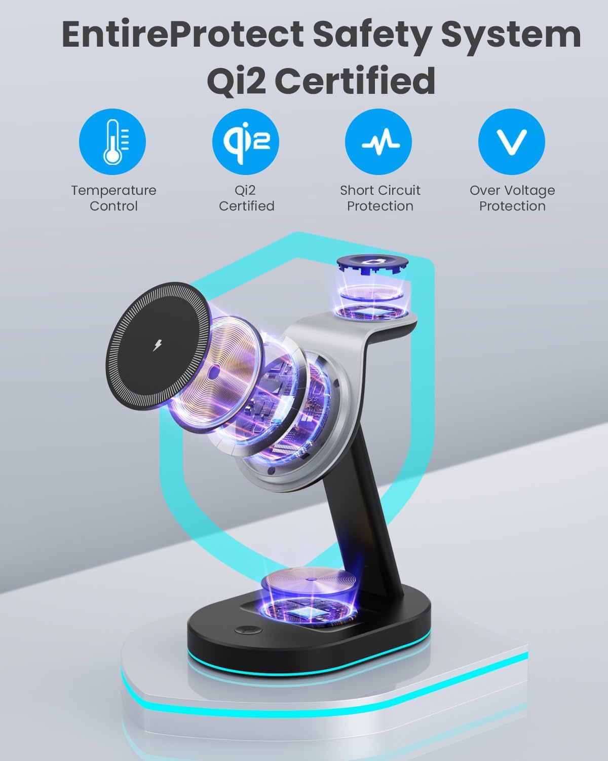- 【Upgrade Powerful Mag-Safe Charger Stand】Mag-Safe charger 3 in 1 makes fast charging safe and easy. The built-in super strong magnet makes alignment instantly and precisely, just 1 second to achieve lightning fast wireless charging. The magnetic charger can hold your iPhone horizontally and vertically, or in any directions. The anti-slip design on the bottom makes charging safer.