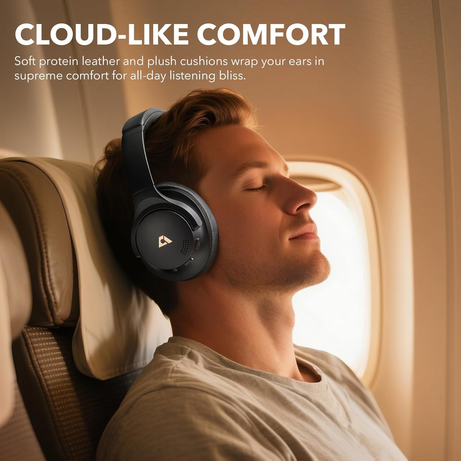 - ALL FOR COMFORT & PORTABILITY: The plush memory foam cushions cradle your ears in pressure-free softness, and the adjustable headband guarantees a personalized fit. The sleek, foldable design makes the over ear headphones effortlessly portable – perfect for daily commutes and airplane trips