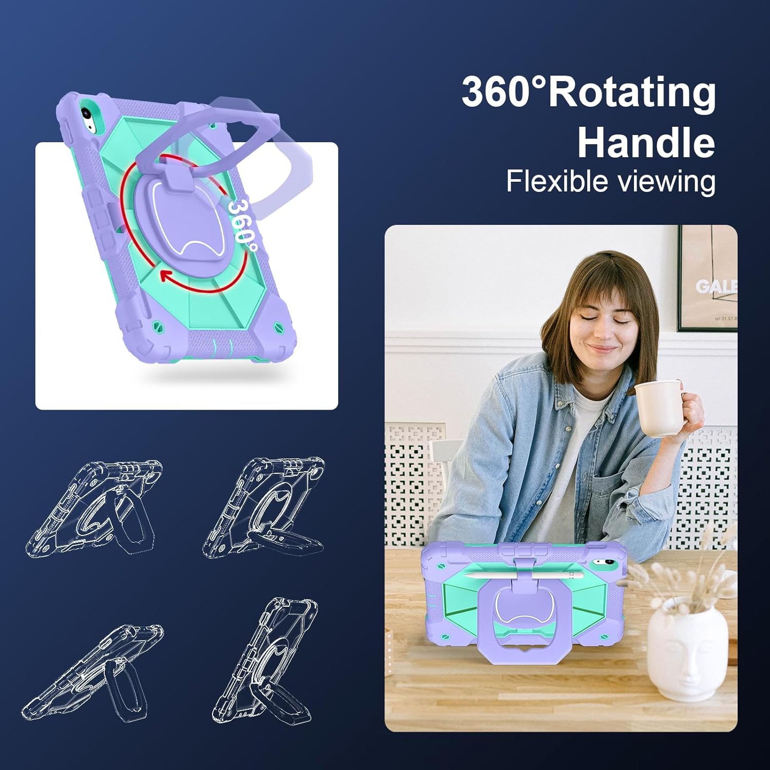 Case for iPad (A16) 11th Generation 11 Inch (2025) / iPad 10th Generation Case 10.9 Inch (2022) with 360° Rotating Stand Screen Protector Pen Holder Shoulder Strap, Purple Mint
