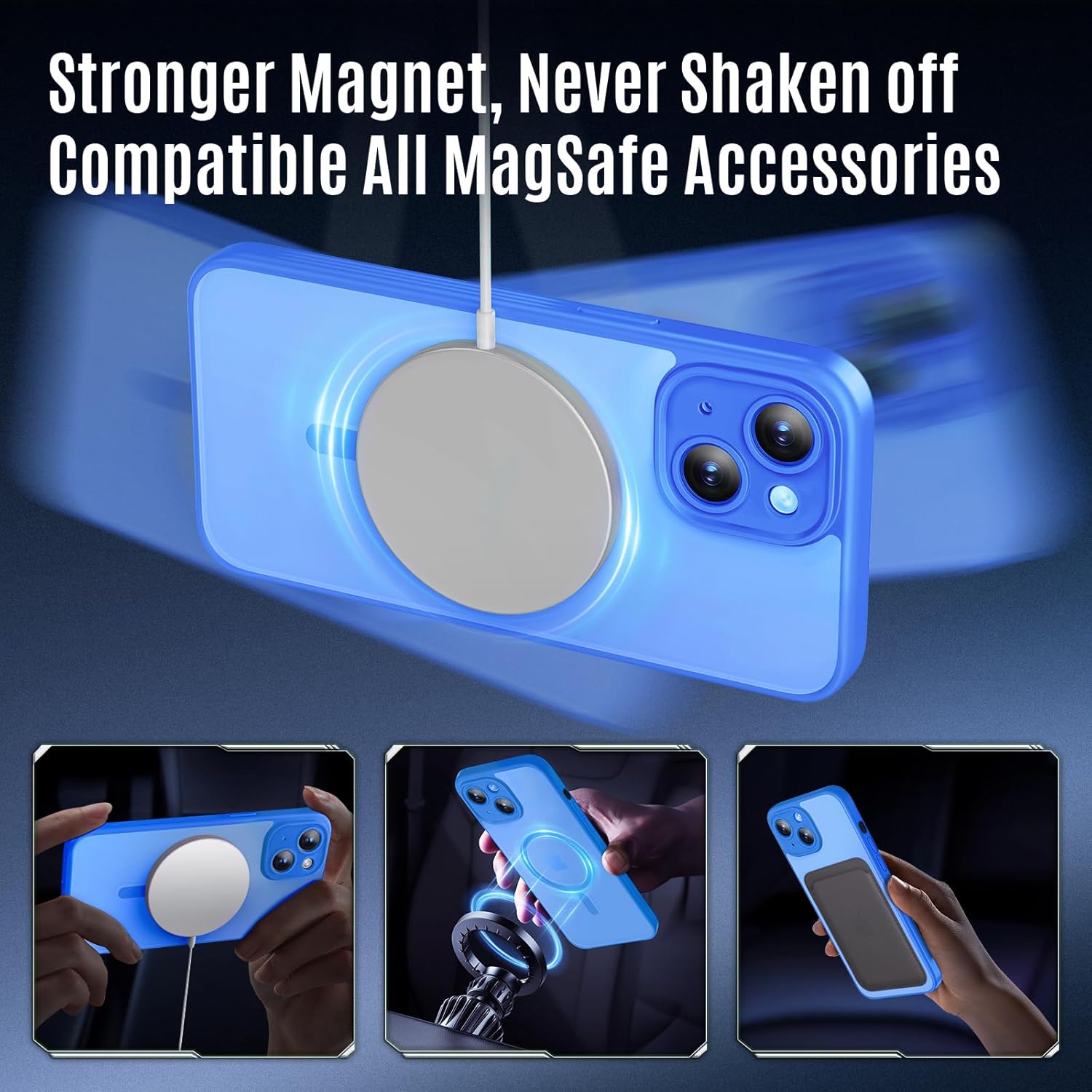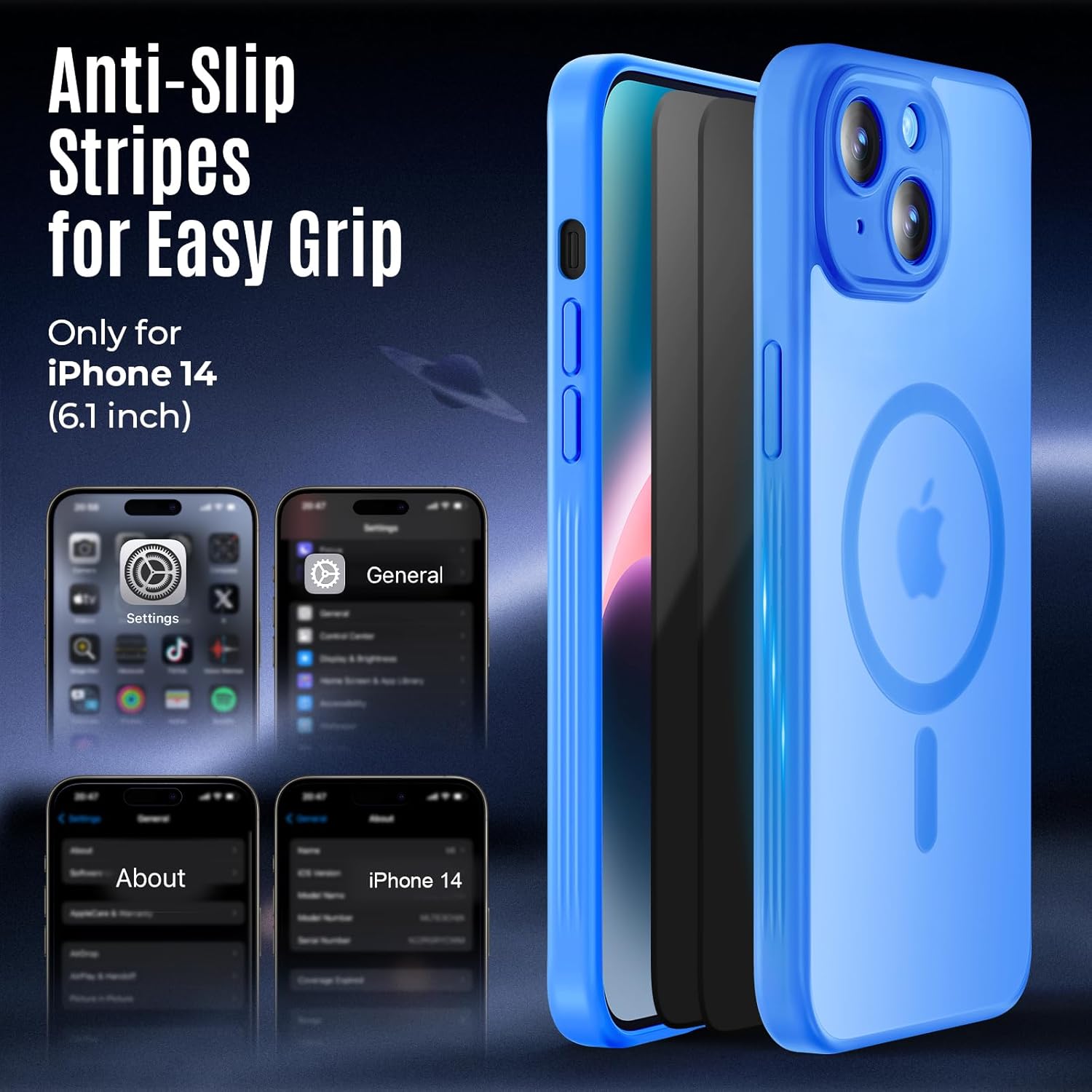 Designed for iPhone 14 Case, Compatible with MagSafe, with Privacy Screen Protectors X2, [Camera Protection] [15FT Military Drop Protection] Shockproof Phone Case, 6.1", Blue