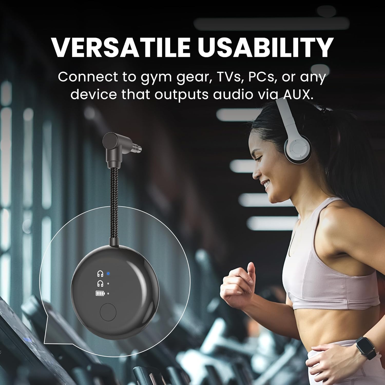 - 【PORTABLE BLUETOOTH TRANSMITTER】 Compact and easy to carry, this adapter also works as a portable Bluetooth transmitter for various uses like gym workouts, watching TV, and traveling.