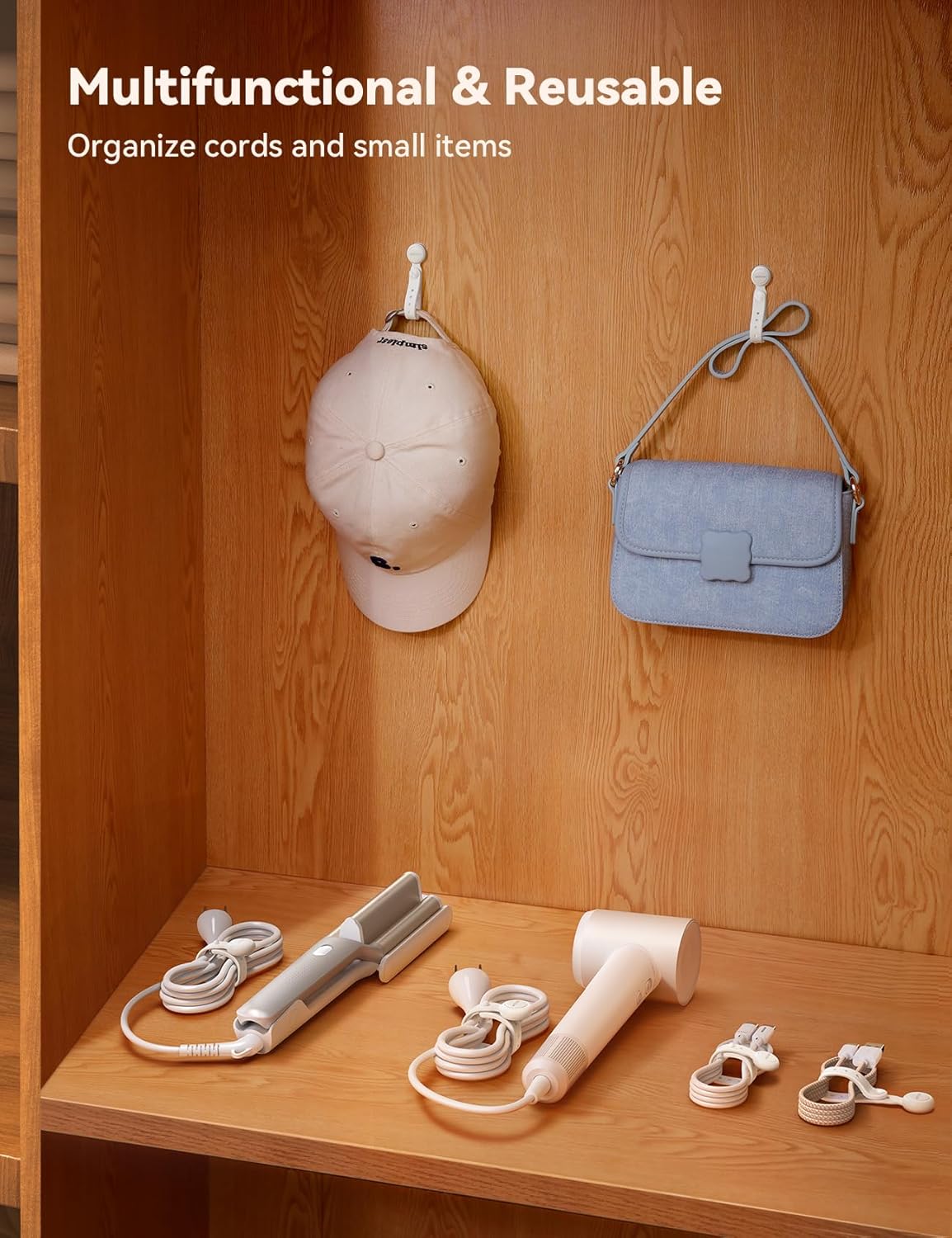 - 【Durable and Flexible Silicone – Protects Cables for Long-Lasting Use】 These reusable cable ties are made from high-quality silicone, soft, stretchable, and wear-resistant. Unlike traditional plastic zip ties, they won't damage your cables or leave marks. Perfect for bundling charging cords, earphone wires, USB cables, and more. Say goodbye to tangled wires!