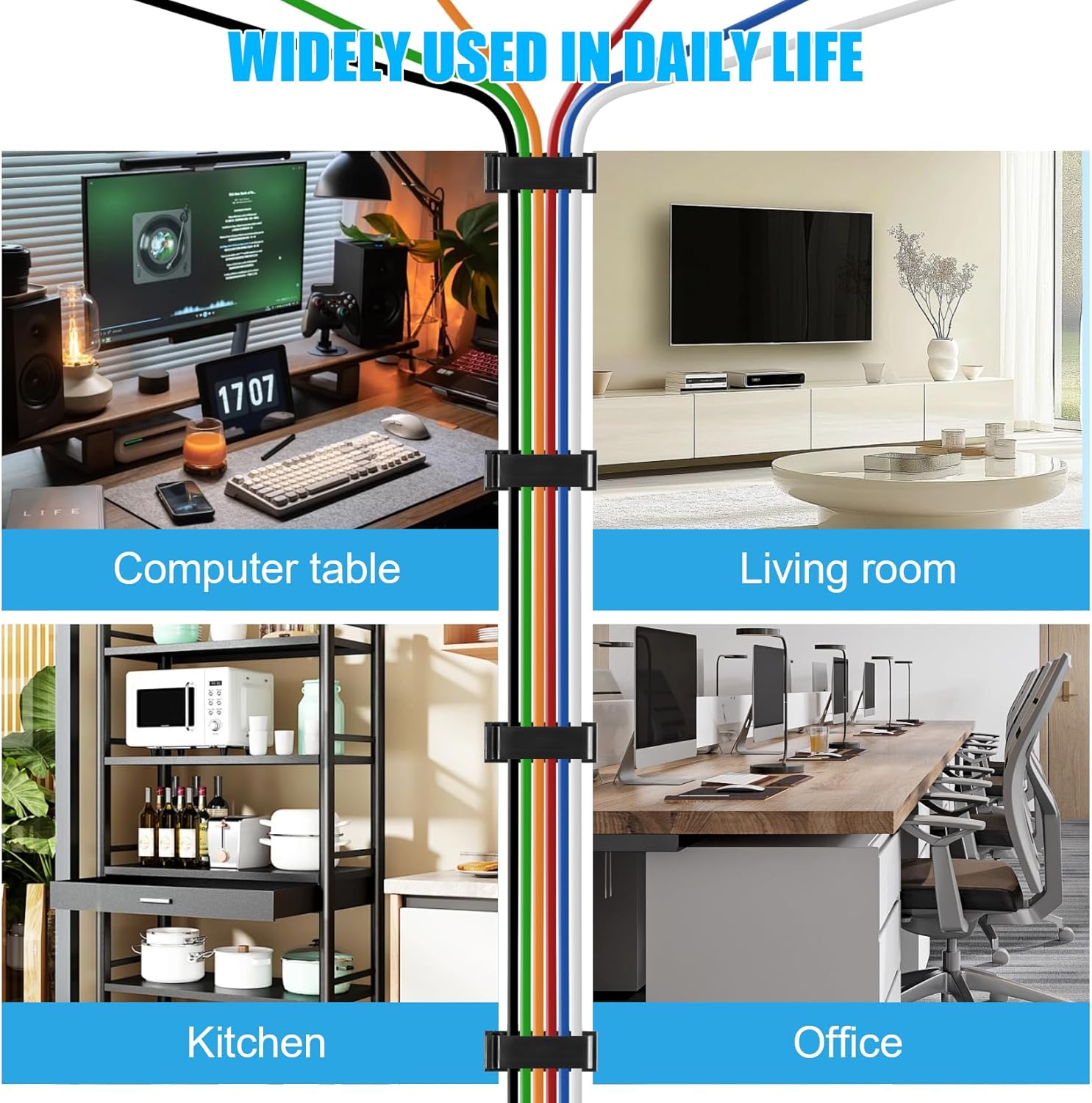 XHF 100 PCS Self Adhesive Cable Clips(L) Black,Wire Clips Cable Management Wire Organizer Cord Holder for Under Desk, Car, Wall, TV PC Ethernet Cable