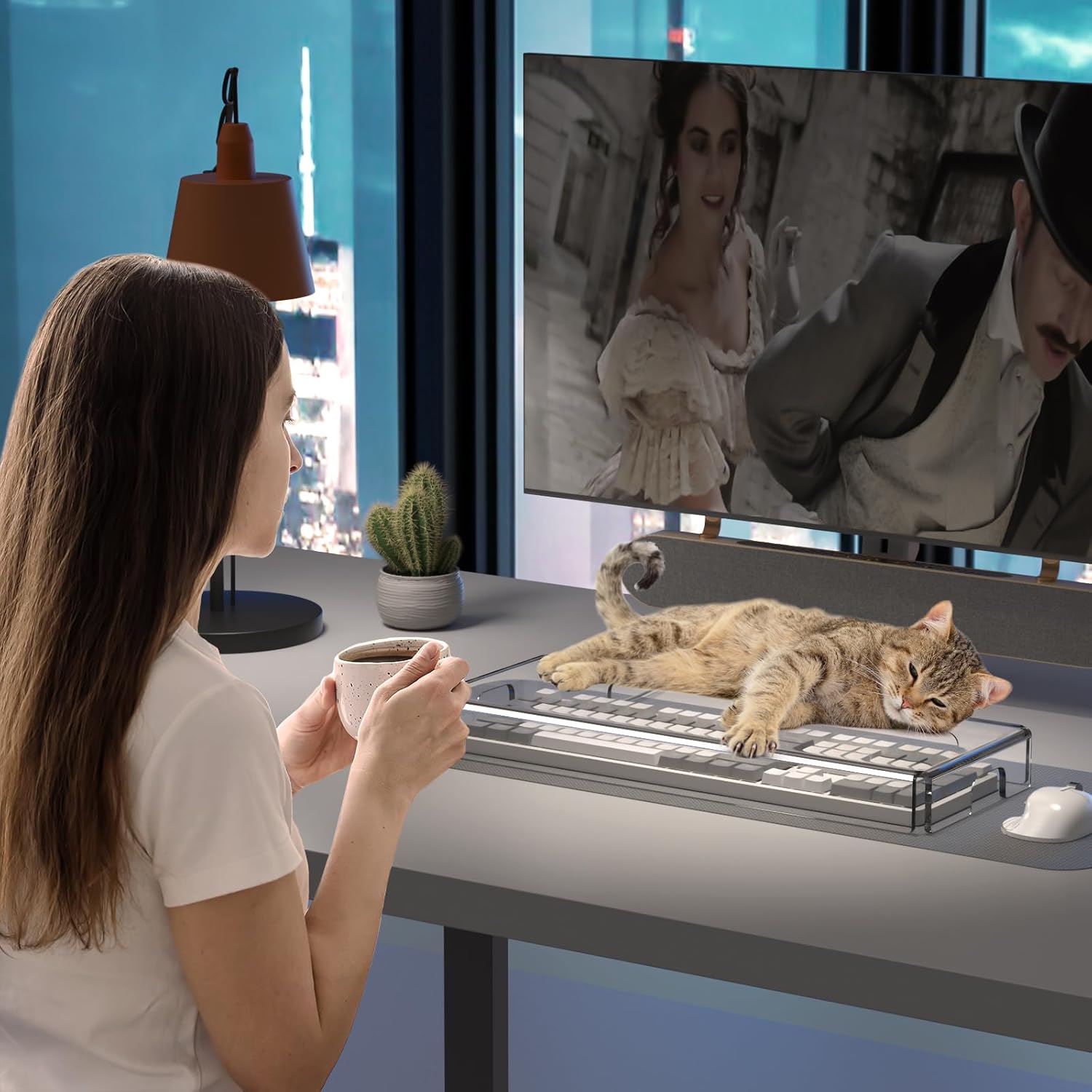 - SPILL-PROOF: acrylic computer keyboard cover is designed to protect 17 inches wide full size standard keyboards from spills, dust and pets such as cats or rabbits walking on your pc keyboard when you step away from your desk, no worry about breadcrumbs falling into the computer keyboard keys aperture whenever you are having a morning coffee at your office desk