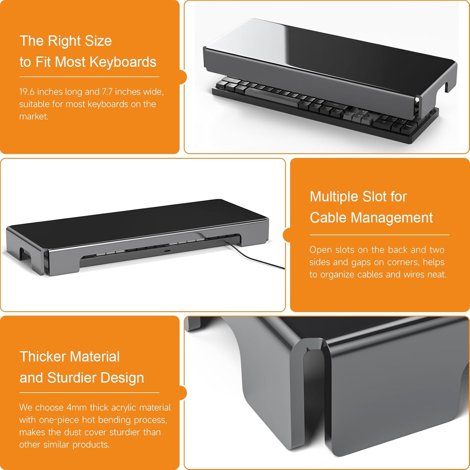 - HEAVY DUTY: made of thick acrylic, computer keyboard dust cover is solid and sturdy, modern and sleek, compact keyboard fits in easily but be noted that the acrylic cover may look bulky when you use the keyboard protective cover to cover a mouse and 78-key small keyboard, it makes a cute office supplies and nice office essentials