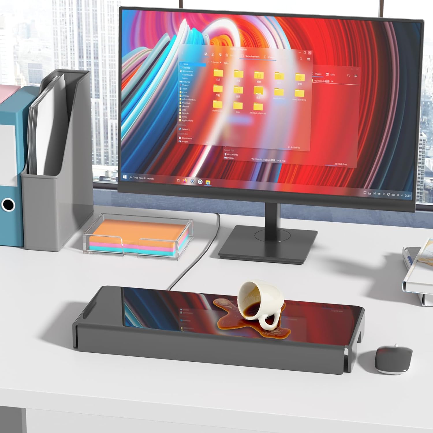 - CABLE MANAGEMENT: open slots on the back and two sides of the functional acrylic keyboard dust cover helps to organize cables and wires neat and makes less clutter on your desktop by giving a minimalistic look, waterproof keyboard shield cover is easy to clean with a wipe if you have your hot coffee spills on it