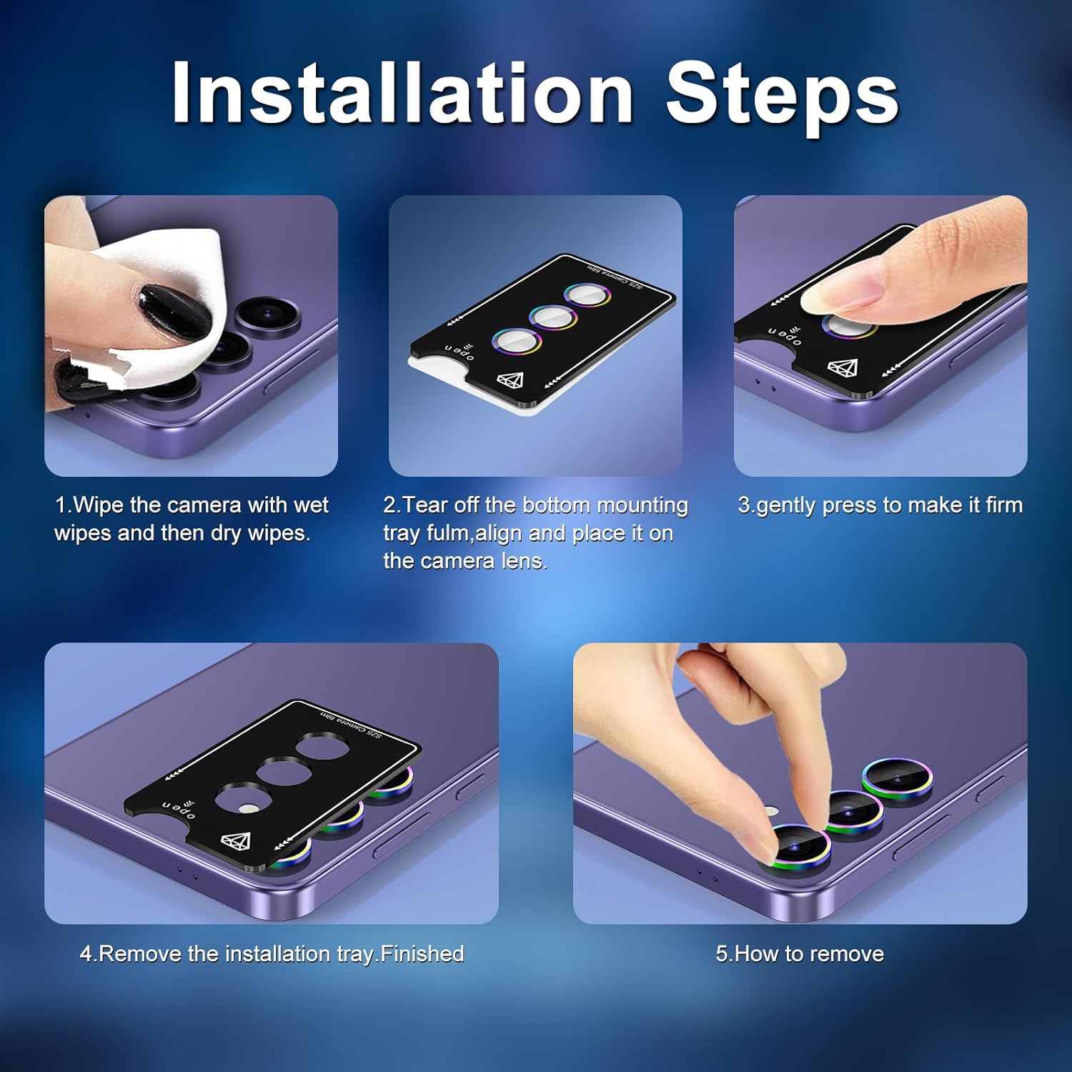 - 【Easy Installation & Lifetime Service】The lens protectors are preset in an easy installation tray. Simply peel off the plastic plate, align and firmly press down the lens protectors to the camera lenses, and then remove the tray. If you have any question or product problem, just contact us and we will reply to you as soon as possible.