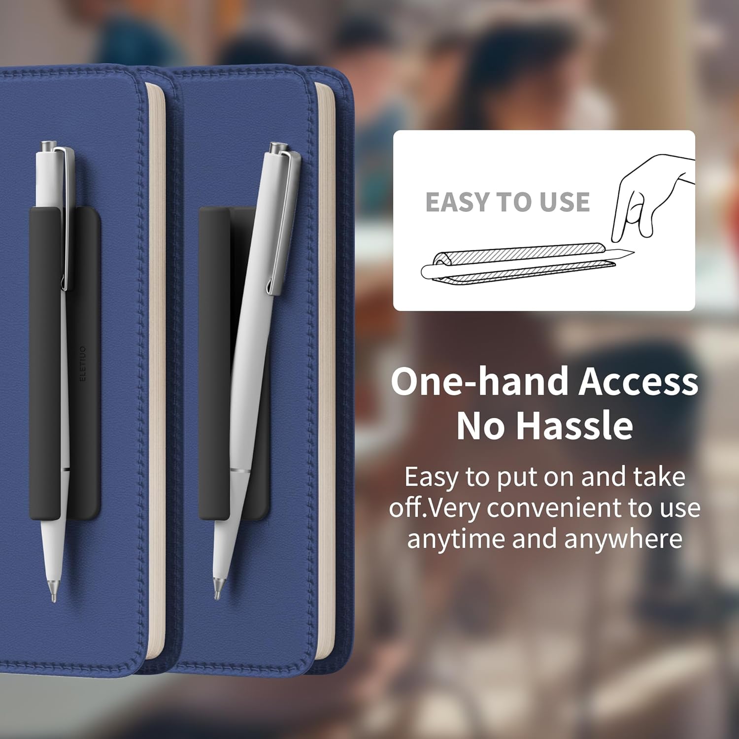 ELETIUO Pencil Holder For Most Pens,Pencils,Self-Adhesive Stick To Notebooks,Diary,Desks,Whiteboards Or Any Surface,Silicone Pen Holder For Home,Office And Desk Organization,Black