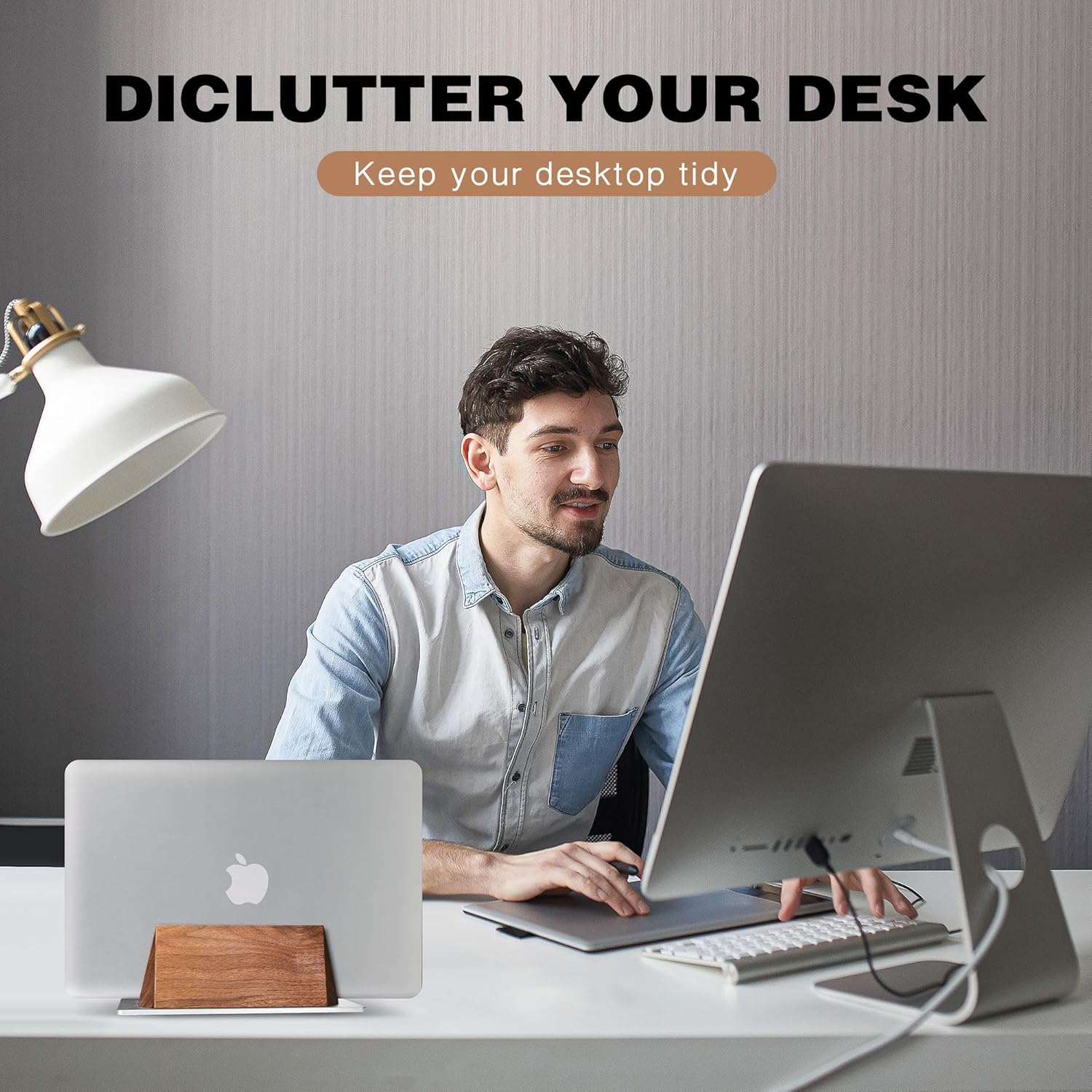 - Save Desk Space - Vertical laptop stand, compared to the laptop flat on the desktop, more space-saving, so that the desktop is more efficiently utilized, say goodbye to the cluttered desktop