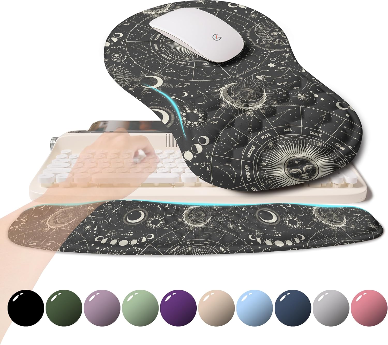 2-in-1 Ergonomic Set, Wave Rise Keyboard Wrist Rest and Massage Bulge Slope Mouse Pad Wrist Support, Cushion Memory Foam Integrated to Relieve Wrist Pain, Constellation