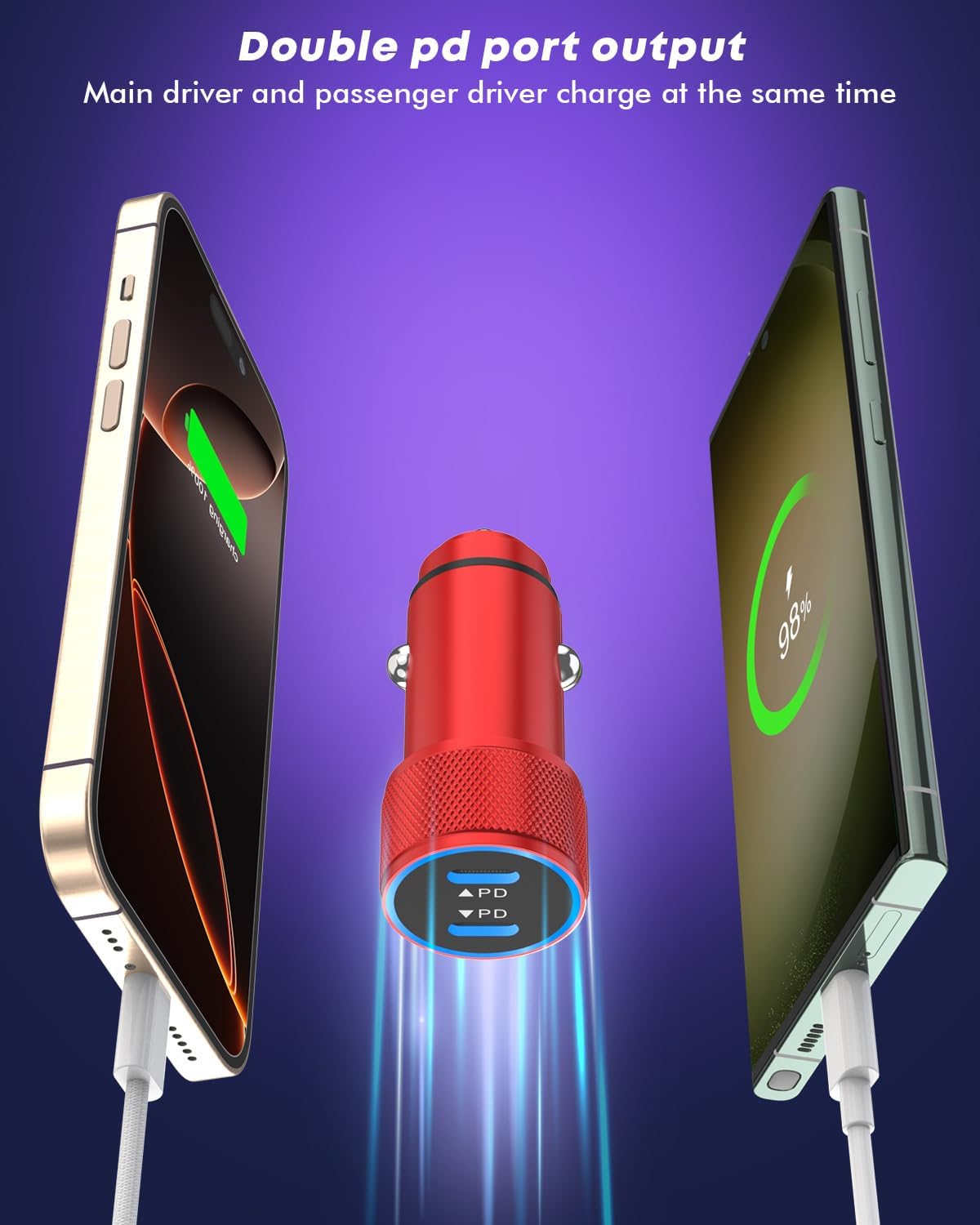 - Fast Car Charger for iPhone 16: Car charging adapter equipped with dual PD3.0 ports.The charging speed is 3X of the ordinary car charger adapter.Fast charging for both your devices at the same time,Save your charging time and make your trip more efficient.