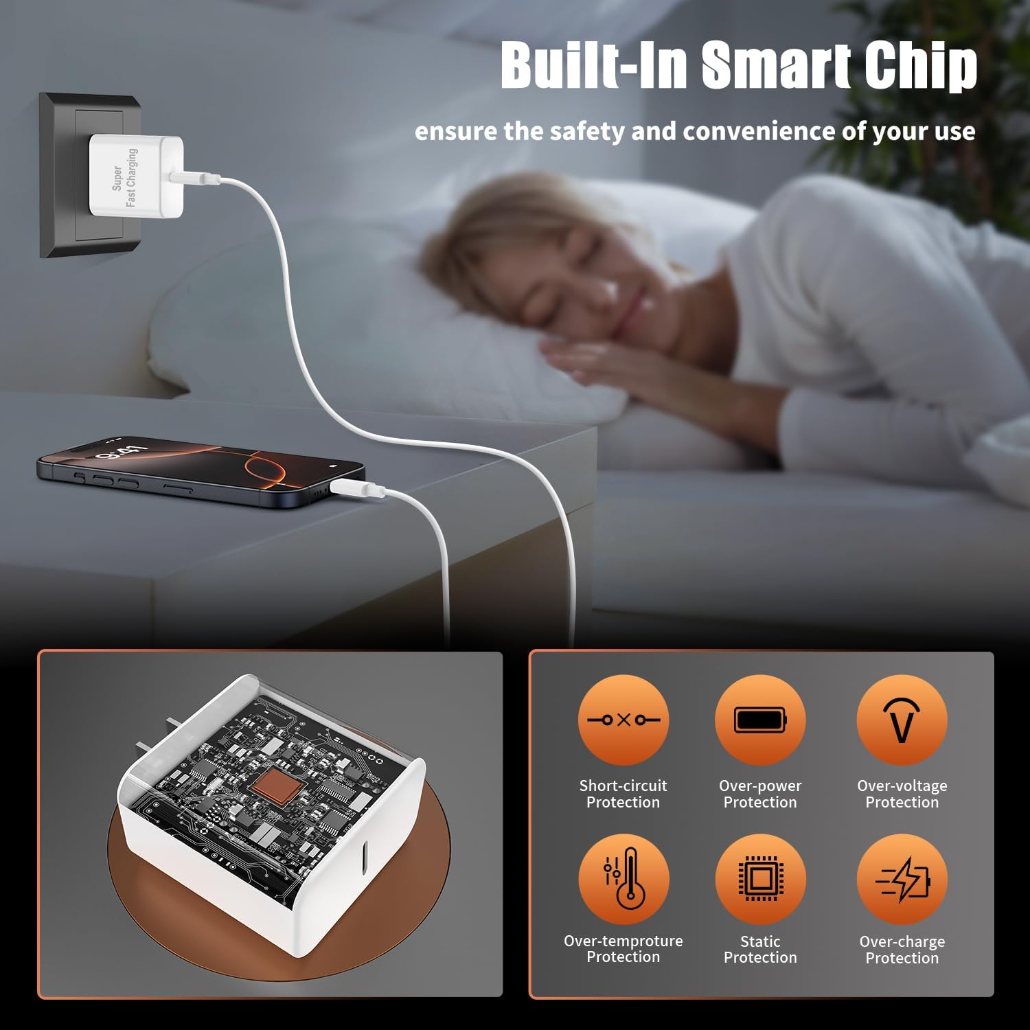 - 【Safety Efficient Fast Charging】For Our USB C for iPhone 16 charger fast charging prioritizes safety with its comprehensive protection system, guarding against over-voltage, over-charge, and over-heating. Equipped with advanced smart chips, it intelligently adjusts the current to match your device's needs, guaranteeing a rapid and secure charging process for iPhone16 15 series.