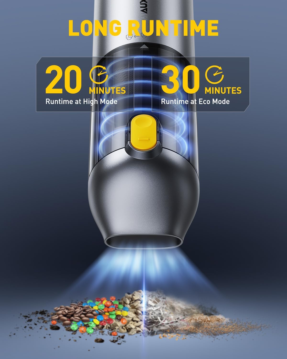 - 【14000PA HIGH POWER SUCTION HANDHELD VACUUM】The upgraded high-speed brushless motor delivers 14000Pa of powerful suction to quickly and easily pick up stubborn sand, dust, and debris. 2 suction modes of 8500PA and 14000PA are available to meet your different cleaning needs. (If the vacuum cleaner is in a low battery state, you may feel weakened suction power when using the high speed mode, and you need to charge it in time when using the high speed mode continuously.)