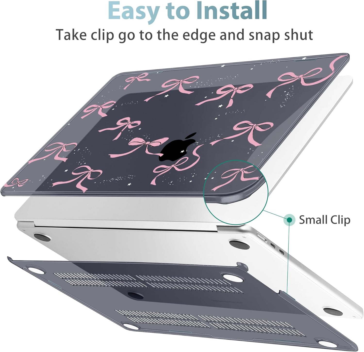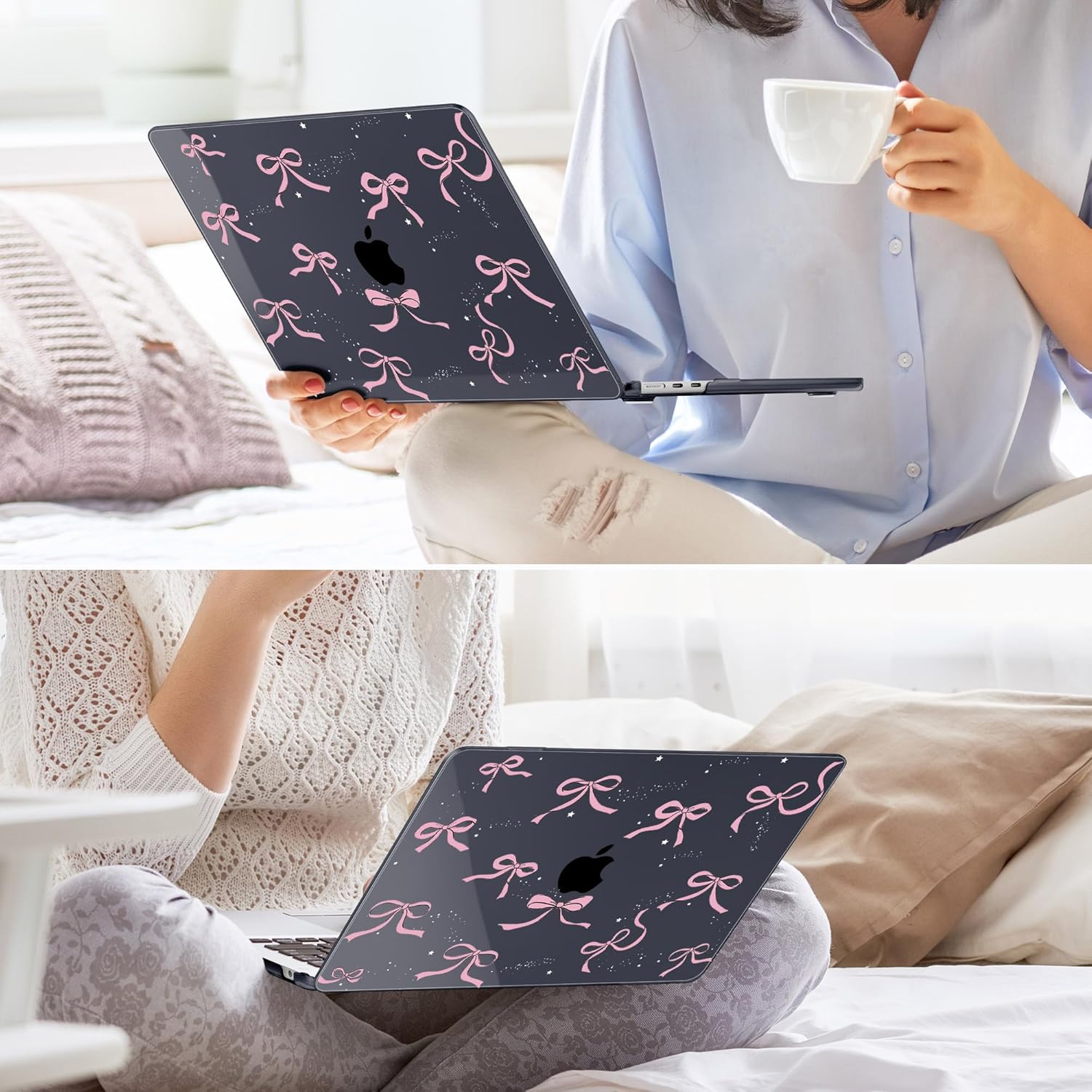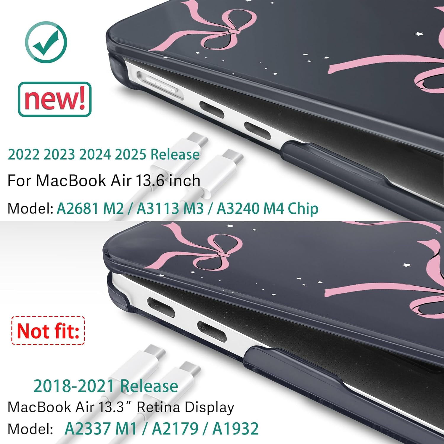 May Chen for MacBook Air 13.6 inch Case A3240 M4 A3113 M3 A2681 M2 with Retina Dispaly, 2025 2024 2023 2022 Release, Plastic Hard Shell Case with Screen Protector & Keyboard Cover, Crystal Black Bow