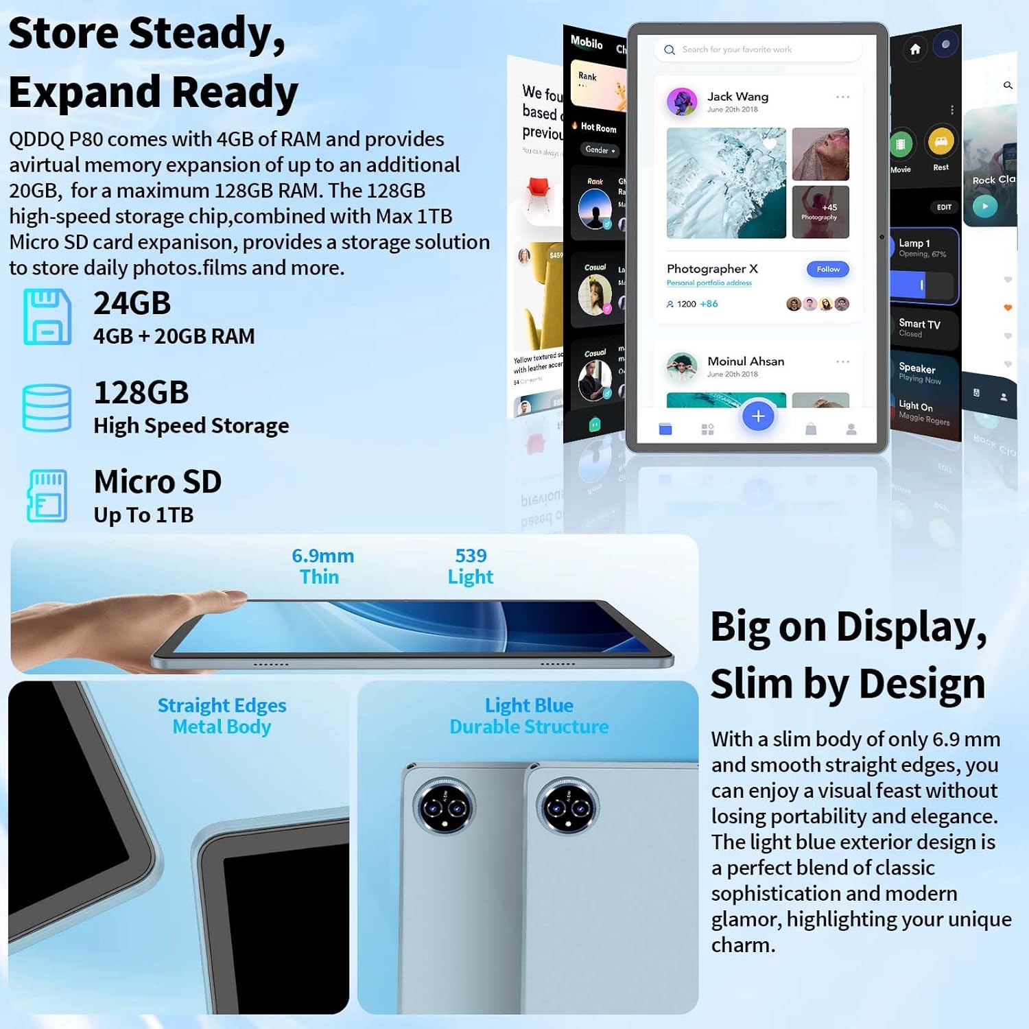 - 【Android 15 Tablet, 128GB ROM】New large-capacity Android 15 tablet 24GB RAM (4GB RAM + 20GB extend), 128GB ROM allows you to store more photos and documents. A micro SD card slot expands storage up to 1TB (FAT32 format, sold separately) so you can store all your favorite media files together, including ebooks, videos, photos. Android 15 and GMS certified, allowing you to download popular apps from the Google Play Store