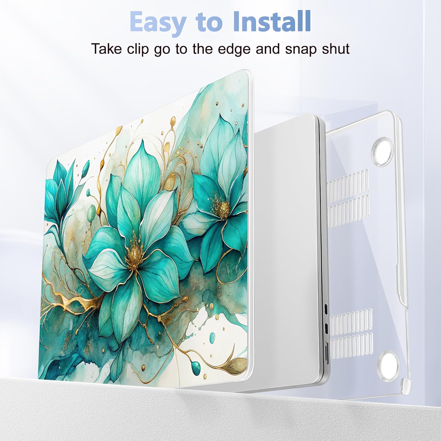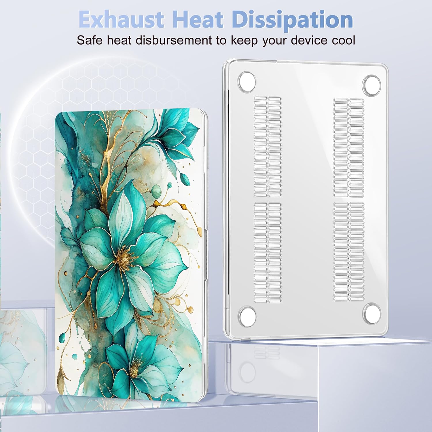 Case for MacBook Air 15 Inch 2025 2024 2023 Release M4 A3241 M3 A3114 M2 A2941, Hard Shell with Screen Protector & Keyboard Cover, Compatible with Touch ID, Green Floral