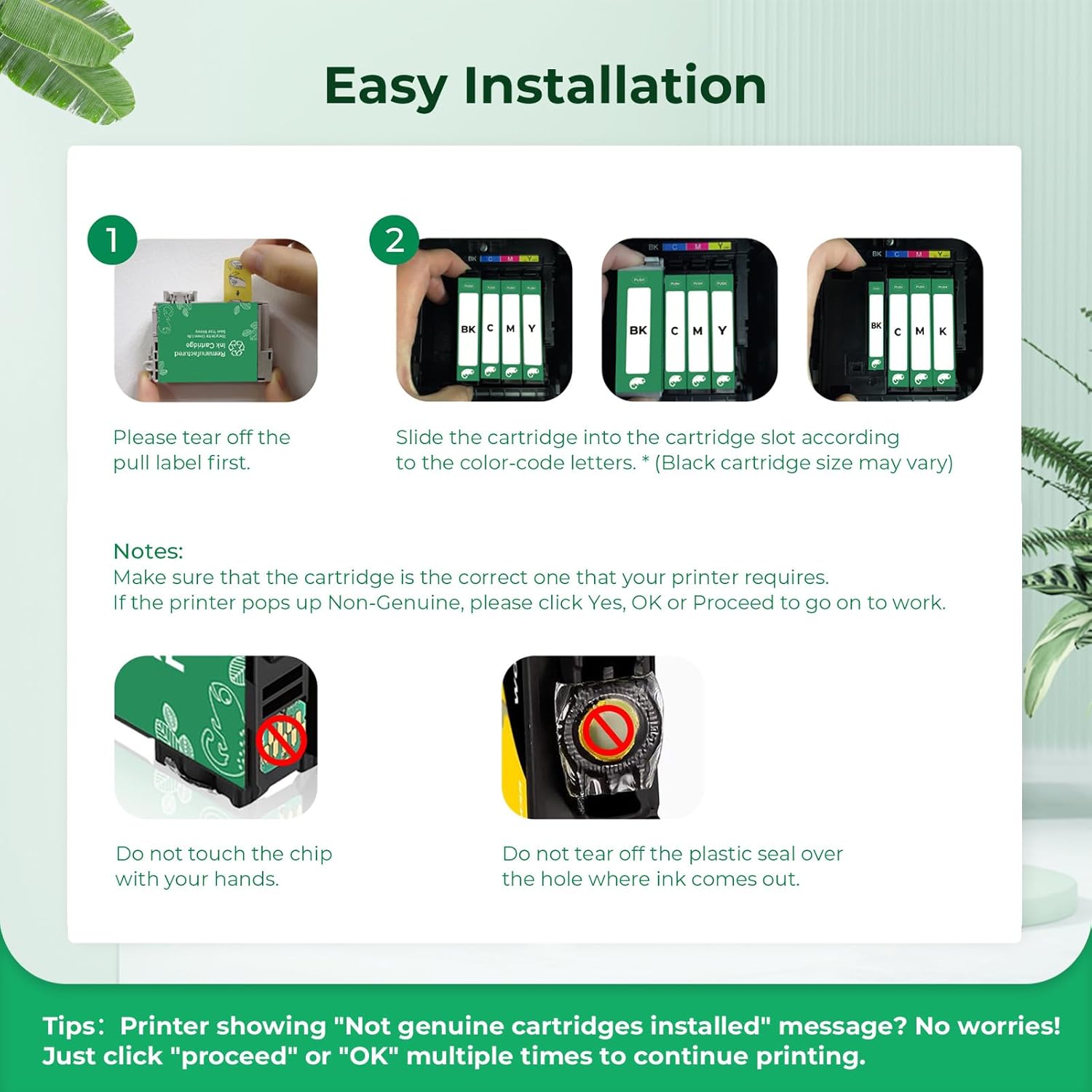 - Easy Installation & Reliable Durability: Quick and simple setup. Each ink cartridge is rigorously tested for performance and stability, minimizing issues like clogging and recognition errors
