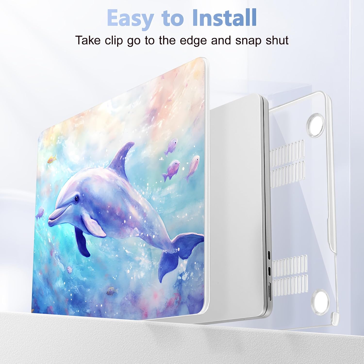 Case for MacBook Air 15 Inch 2025 2024 2023 Release M4 A3241 M3 A3114 M2 A2941, Hard Shell with Screen Protector & Keyboard Cover, Compatible with Touch ID, Blue Whale