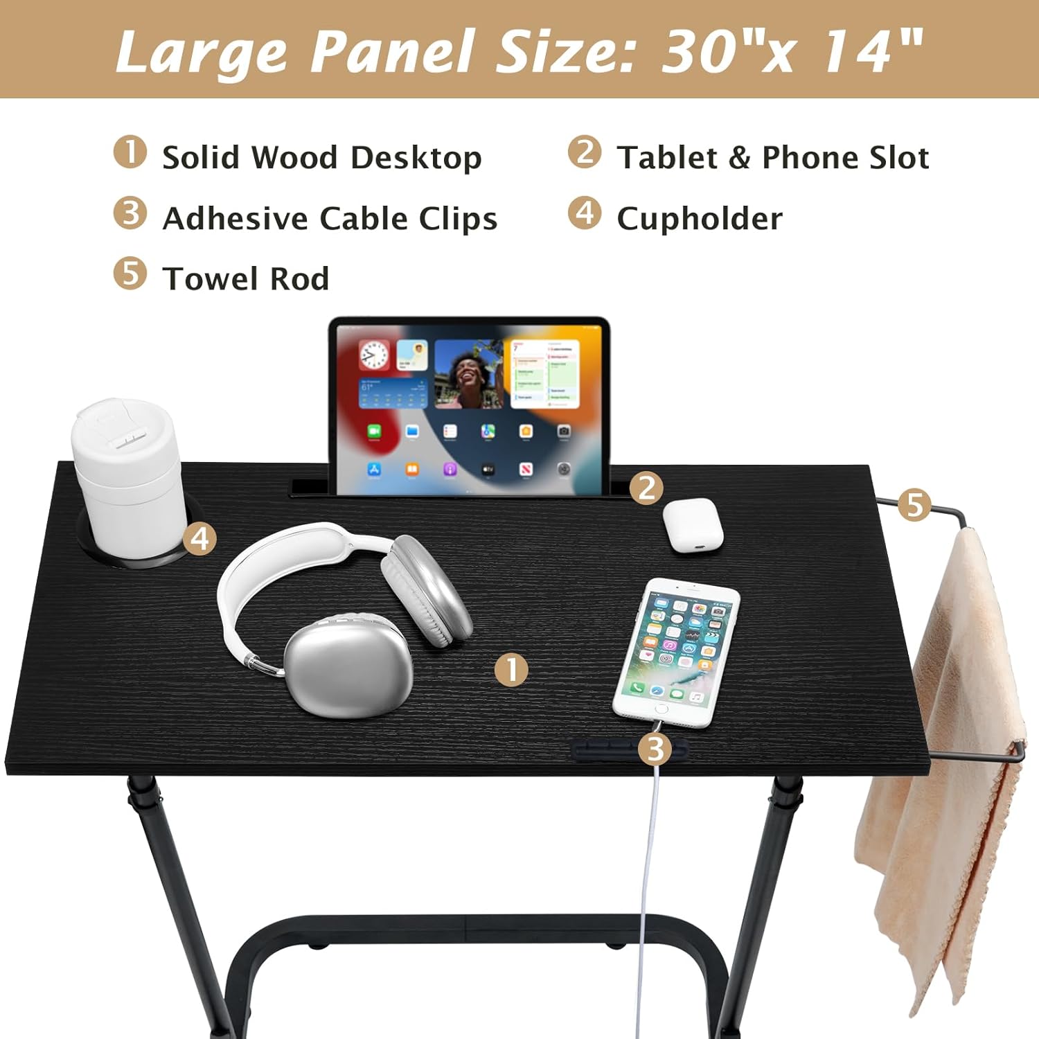- LARGE SURFACE SPACE: ikkle treadmill standing desk is easy to set up and use. The wide table is large enough to hold your computer, mouse, monitor, laptop, and book. We designed a front slot and cup holder for tablets, phones, bottles, and mugs. Also, the side iron rod can hold your towel and side washcloth.