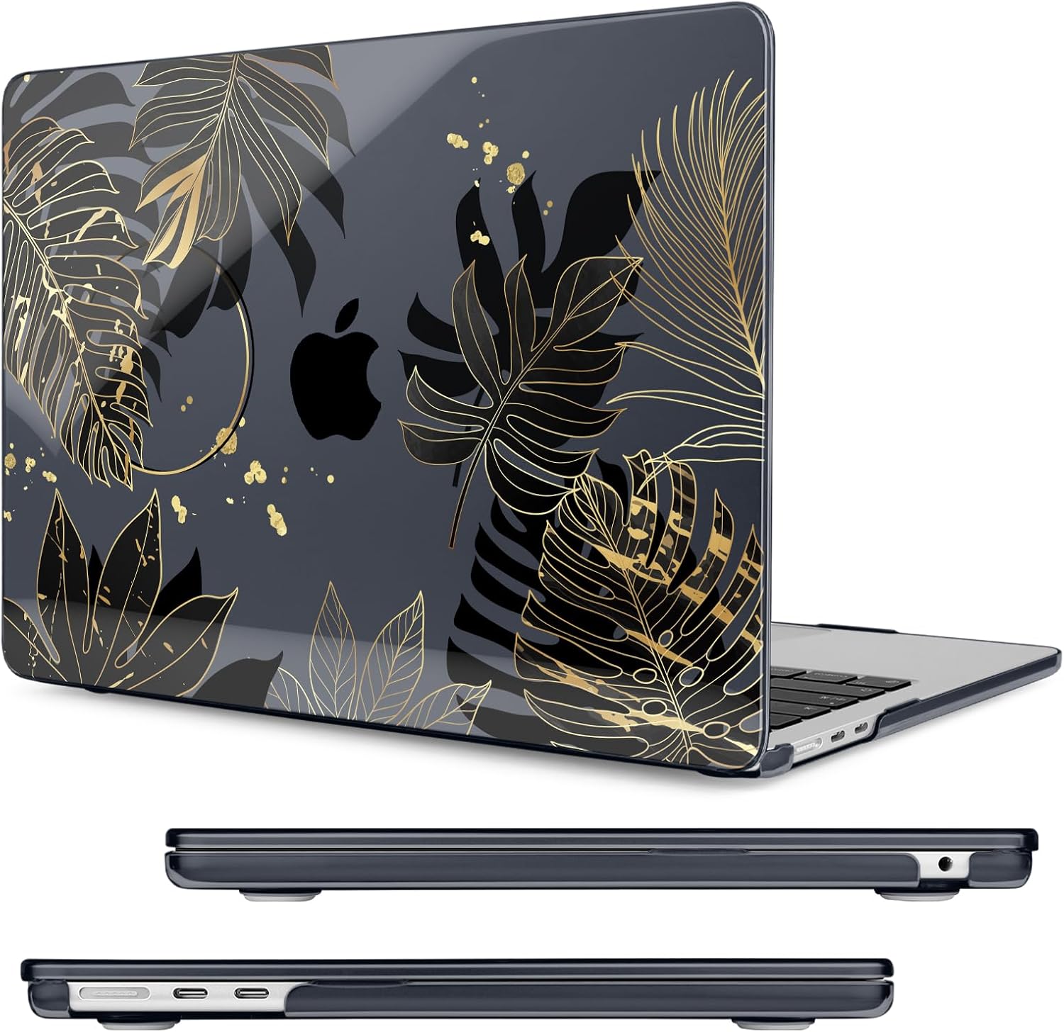 Compatible with MacBook Air 13.6 inch Case, M4 A3240/M3 A3113/M2 A2681 (Released 2025 to 2022), Hard Shell, Keyboard Cover, Screen Protector, Webcam Cover & Type-C Adapter, Gold Tropical Leaf