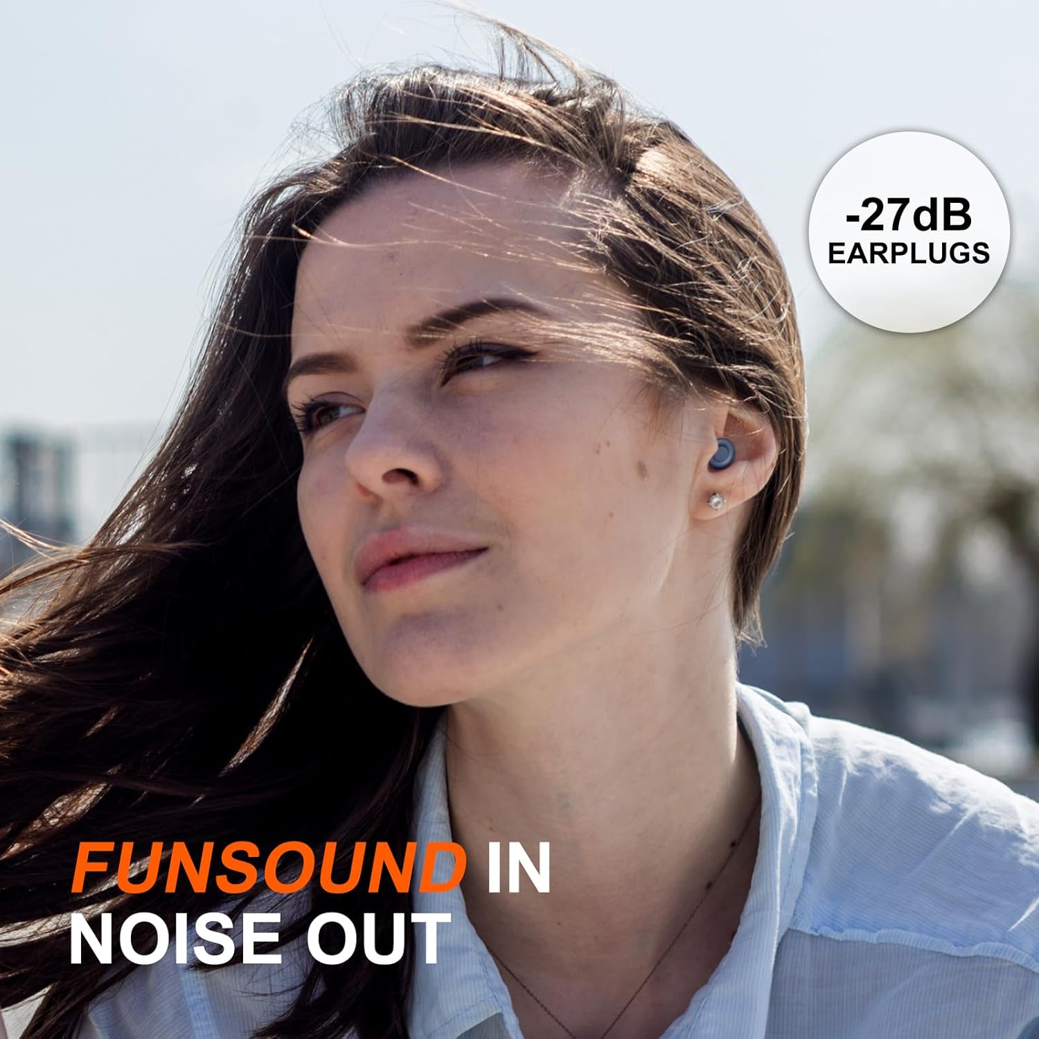 - OUTSTANDING NOISE REDUCTION - FUNSOUND earplugs are reusable and durable hearing protection. They reduce most noise and help you to get in your world rapidly. They have a noise reduction rating (SNR) of 27 decibels, NRR of 24.