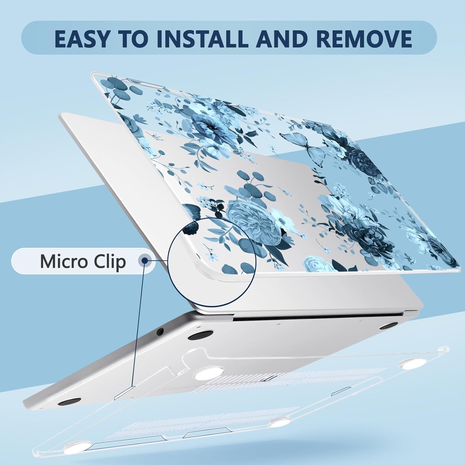 Compatible with MacBook Air 15 inch Case, M4 A3241/M3 A3114/M2 A2941 (Released 2025 to 2023), Hard Shell, Keyboard Cover, Screen Protector, Webcam Cover & Type-C Adapter, Blue Flowers