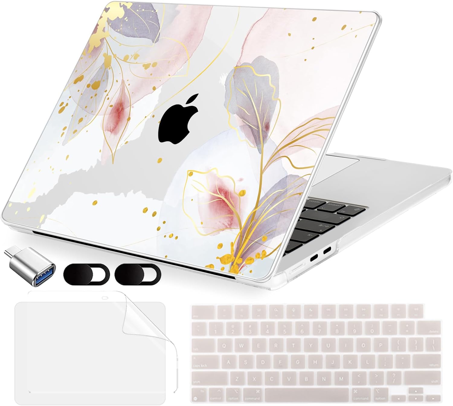 Compatible with MacBook Air 15 inch Case, M4 A3241/M3 A3114/M2 A2941 (Released 2025 to 2023), Hard Shell, Keyboard Cover, Screen Protector, Webcam Cover & Type-C Adapter, Vector Flower