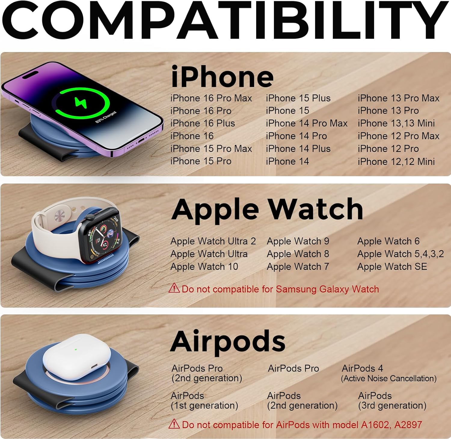 - Compatible Devices : For Cellphone:iPhone 16, iPhone 16 Pro, iPhone 16 Plus, iPhone 16 Pro Max, iPhone 15, iPhone 15 Pro, iPhone 15 Pro Max, iPhone 15 Plus,iPhone 14, iPhone 14 Plus, iPhone 14 Pro, iPhone 14 Pro Max, iPhone 13 mini, iPhone 13, iPhone 13 Pro, iPhone 13 Pro Max, iPhone 12 mini, iPhone 12, iPhone 12 Pro, iPhone 12 Pro Max (Compatible with MagSafe cases) For Earbuds:AirPods 4 Active Noise Cancellation, AirPods Pro(2nd generation), AirPods Pro, AirPods Pro with MagSafe, AirPods (3rd generation), Airpods 2(Must place on the right place) For Watch :Apple Watch Series Ultra/8/7/6/5/4/3/2/SE/9/10 For Cellphone:iPhone 16, iPhone 16 Pro, iPhone 16 Plus, iPhone 16 Pro Max, iPhone 15, iPhone 15 Pro, iPhone 15 Pro Max, iPhone 15 Plus,iPhone 14, iPhone 14 Plus, iPho… See more