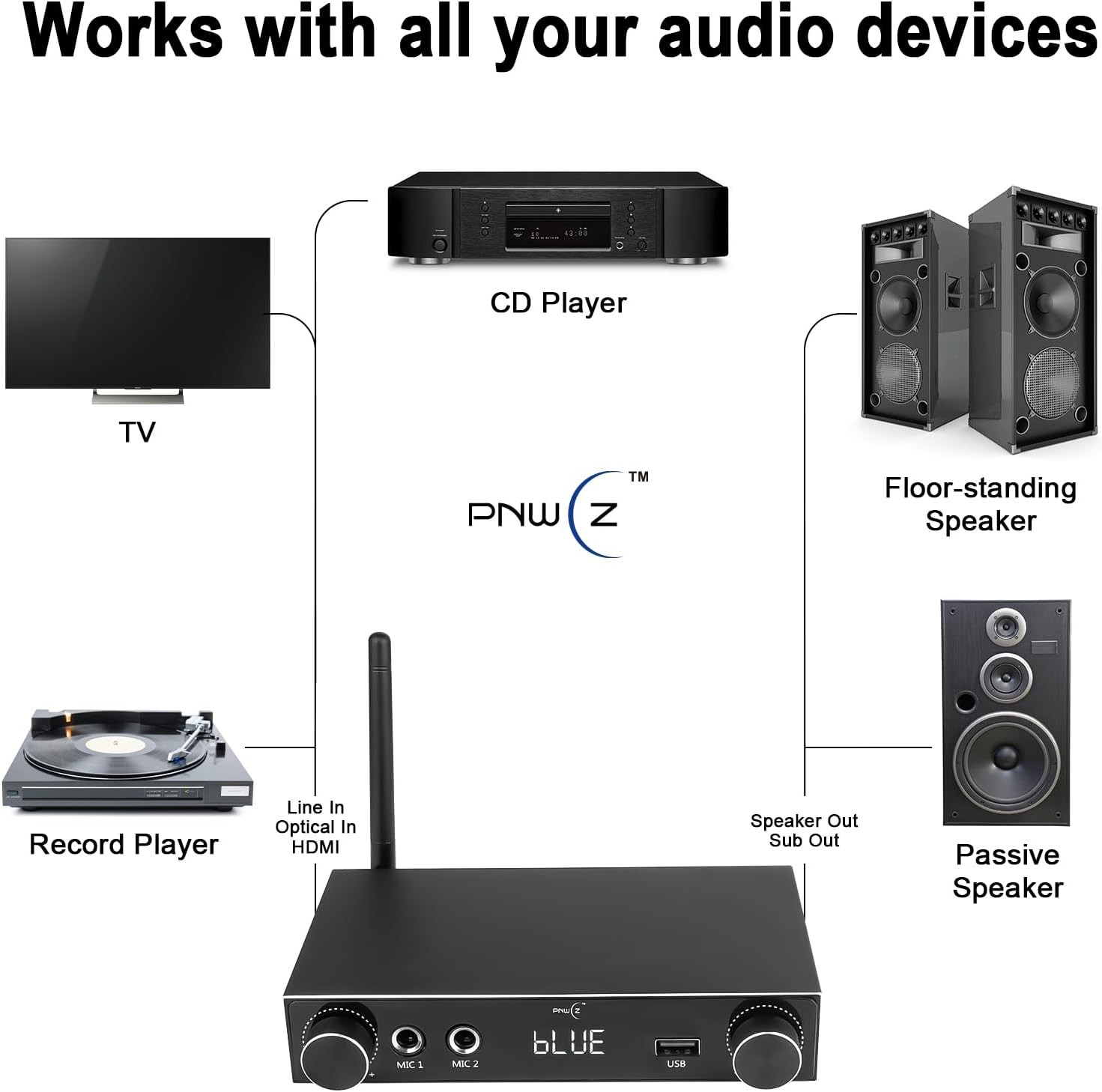 - 5. Multi-Scenario Audio Amplifier Solution: Premium Performance, Unbeatable Value. From home theaters and party karaoke to professional meetings, this Bluetooth Amplifier for Speakers adapts to diverse needs with its rich connectivity and wireless versatility. Whether you’re a music enthusiast, live streamer, or business user, it delivers a budget-friendly yet professional-grade audio experience.