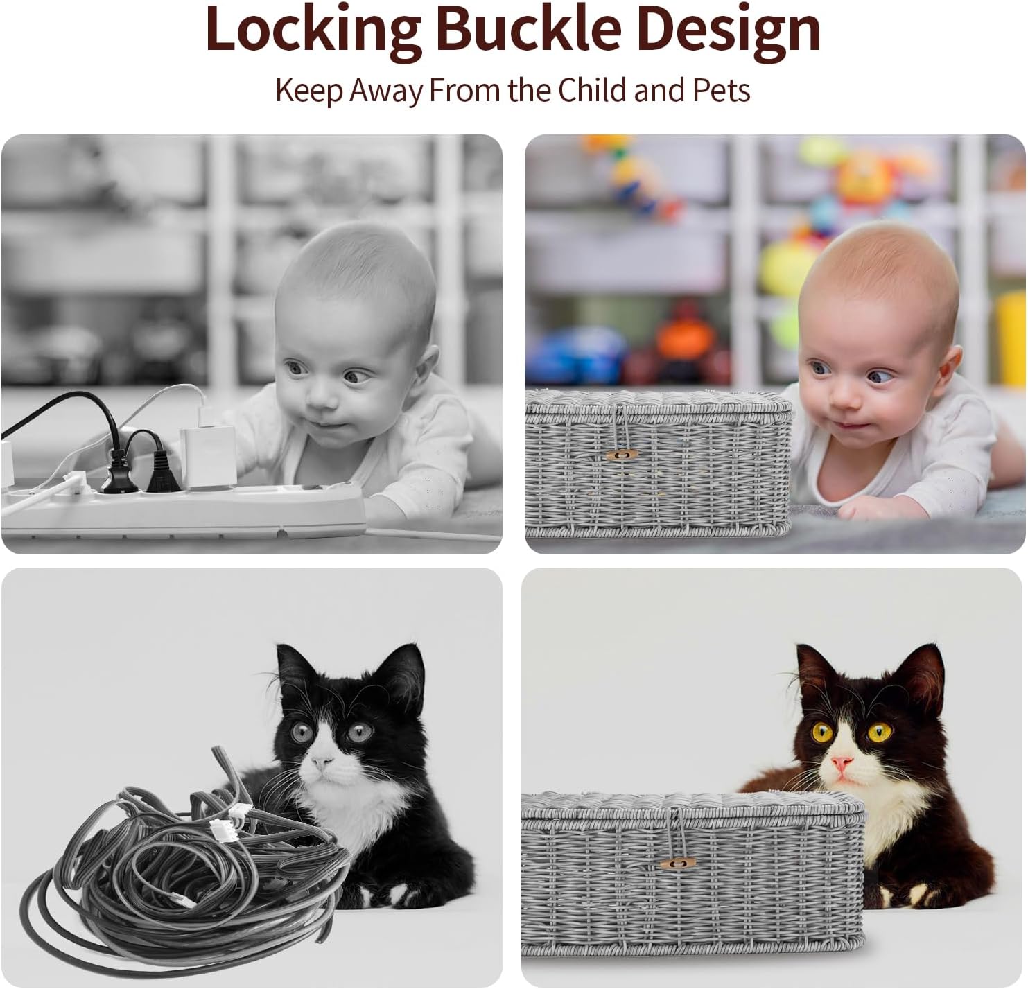 - Child & Pet-Friendly Design for Cable Hider Box: Prioritize safety with the flip-top closure and wood button lock, ensuring your cord management box stays securely closed. This childproof design of cord organizer box protects curious kids and pets from electrical hazards, making it a pet-safe addition to households.