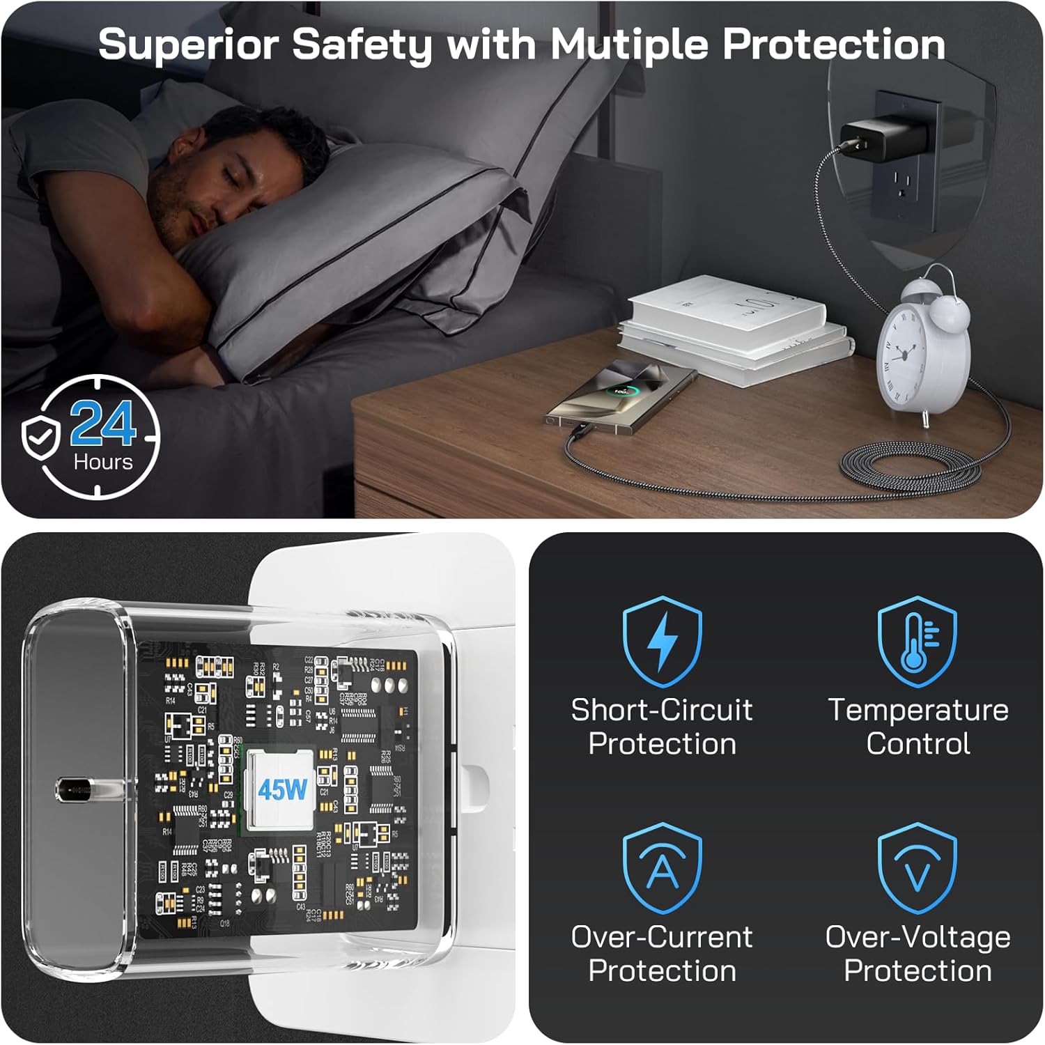 - 【What's Included】45W USB-C Charger Block x2, 12FT Type C to Type C Charger Cord for Samsung Phone x2, backed up by our worry-free 12-month warranty and 24/7 friendly customer support.