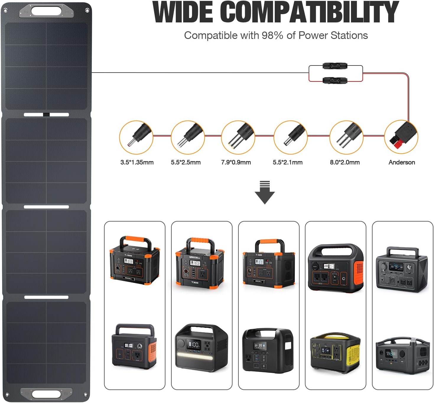 - WIDELY COMPATIBLE - The 120W portable solar panel by GRECELL comes with connectors that can deliver up to 25A current, and includes multiple DC adapters (including 5.5×2.1mm, 5.5×2.5mm, 8.0×2.0mm, 7.9×0.9mm, 3.5×1.35mm, etc.) and Anderson cable. Compatible with Jackery, Ecoflow, Bluetti, and other solar power generators/portable power stations, making it an ideal choice for RV camping or emergency power.