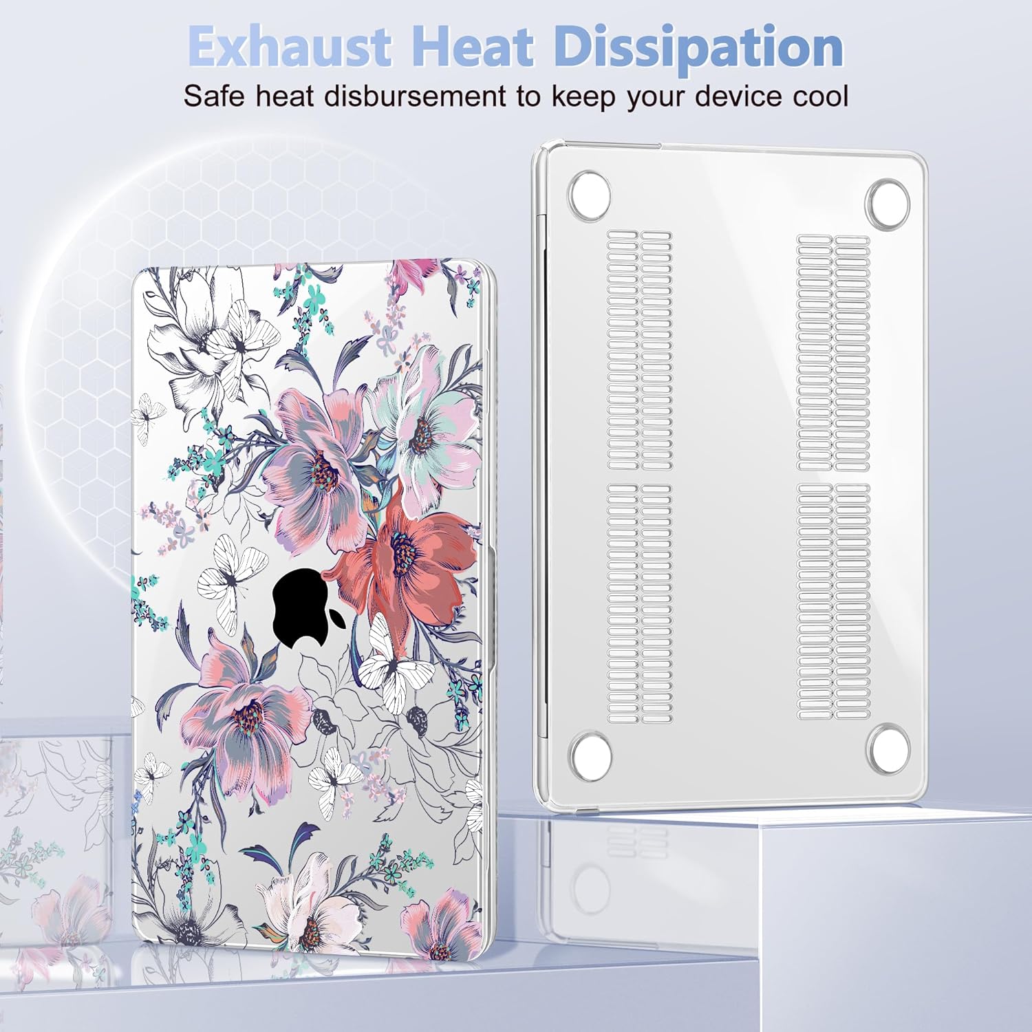 Case for MacBook Air 15 Inch 2025 2024 2023 Release M4 A3241 M3 A3114 M2 A2941, Hard Shell with Screen Protector & Keyboard Cover, Compatible with Touch ID, Floral C319